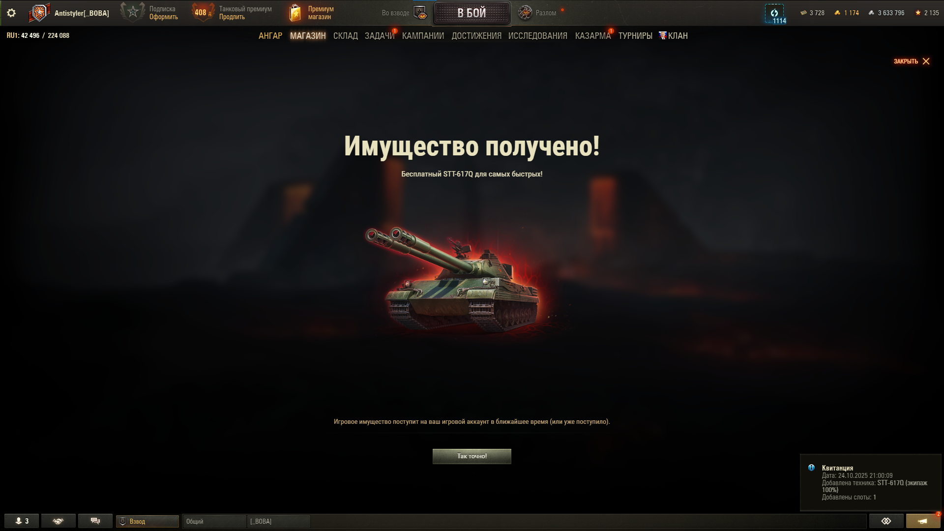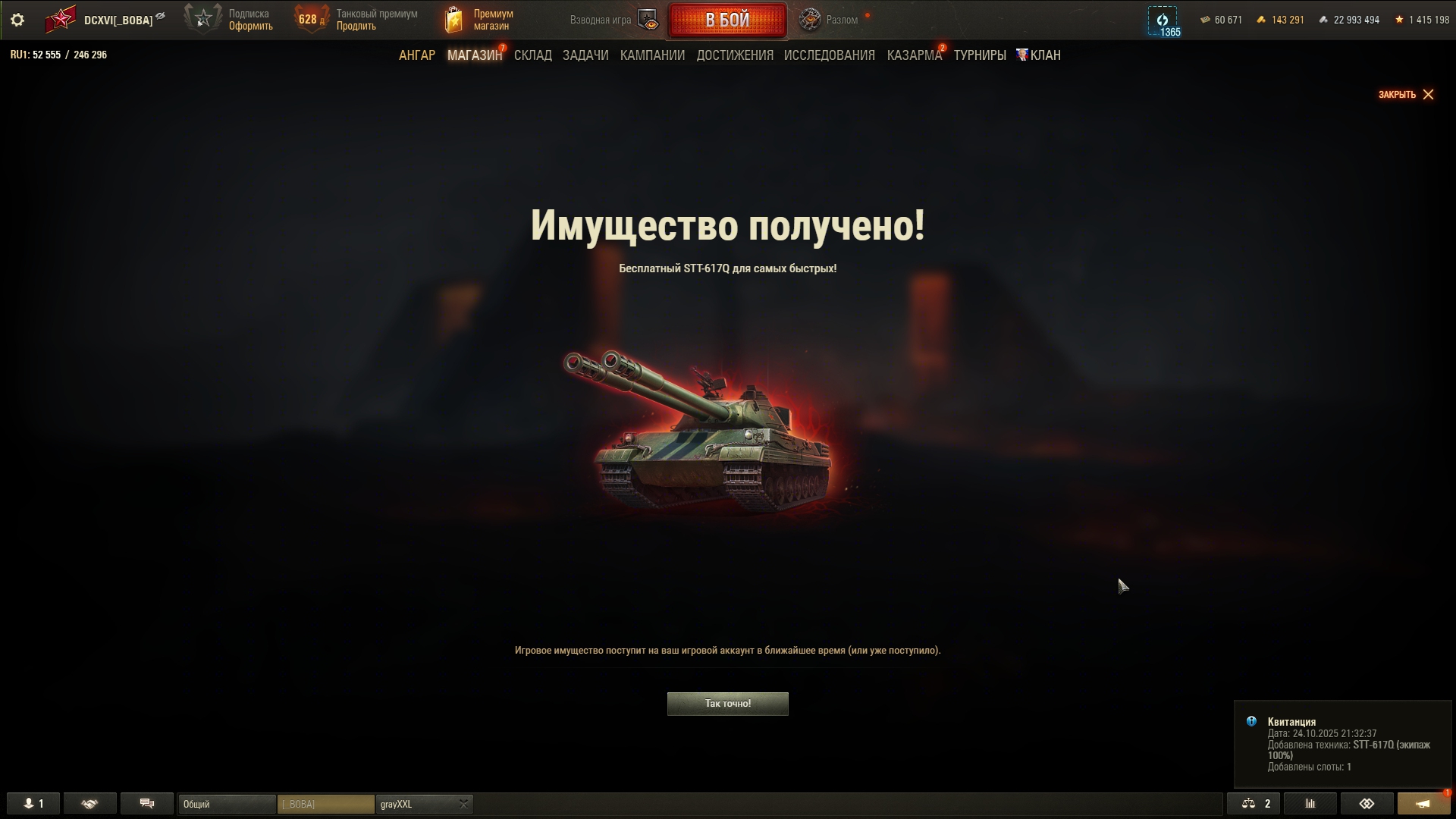703 выпал мне из торгового каравана. Я не ожидал, продал половину ангара в погоне за бонами и золотом. 703 я хотел, но он был у меня в аренде на 30 боев, и я думал что не выпадет, так как в ангаре он есть, хоть и в аренде. А он выпал. Было приятно. В боях кстати совсем другие ощущения, чем от китайца. Просто совсем другие. На 703 выехал как чед. На китайце выехал как омежка. Двустволить в крысу - смешанные чувства.