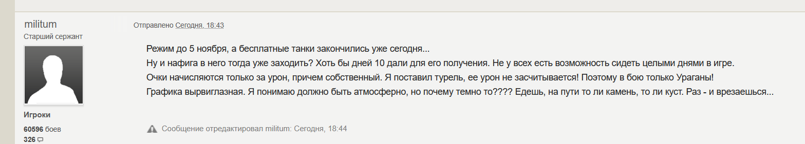 >>50368633 Так как там следующая неделя будет уже день единство а там уже ирл черная пятница 11.11 и никто в танки и ничем будет донатить. Жены сильнее будут бомбить кошелёк мужей