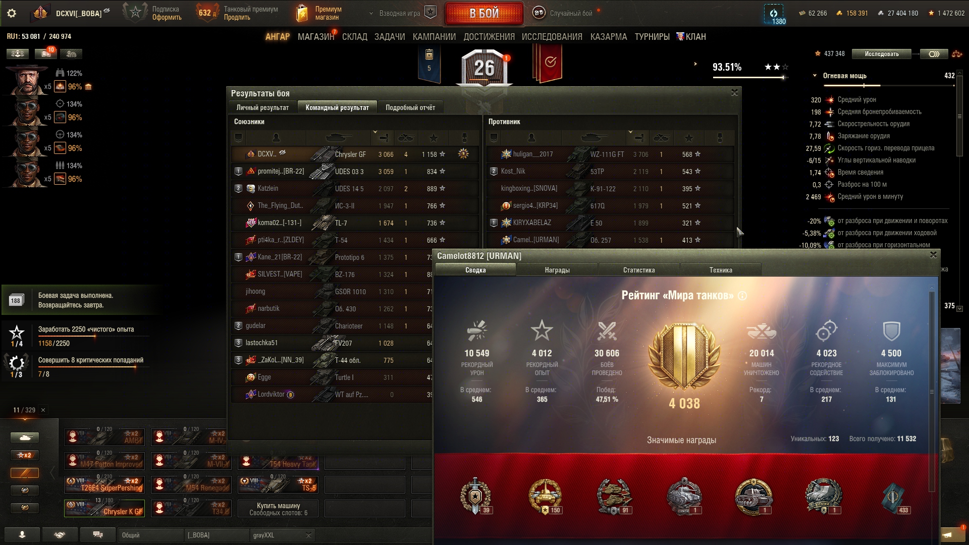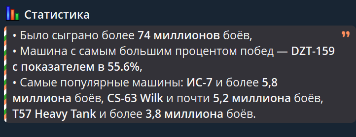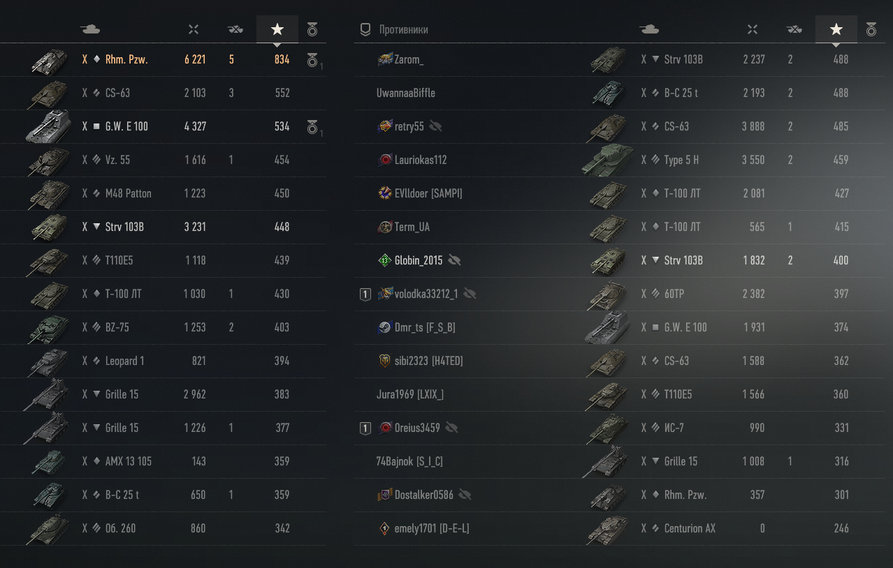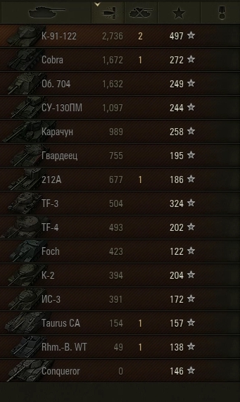Позже, после боя, я заглянул к нему в профиль. Там столбиком громоздились отметки "Мастер" и процентовка побед от 60.
