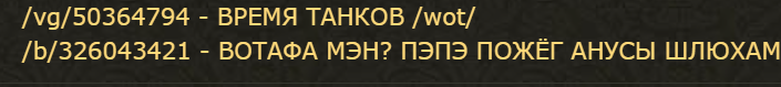 >>50395525 Можно и не открывать входящие сообщения. Вспомнил, на неделе, мне в игре один охуительные советы в бою задвигал, и был явно не доволен моей игрой. После глянул, а там 47% ЦАшник. Ну я ему и написал "47% чудо кого ты учить собрался. И закрыл чат. Так там в течении минуты вкладка мигала на предмет новых сообщений. "Жаль", что я так и не прочитал их, хех.