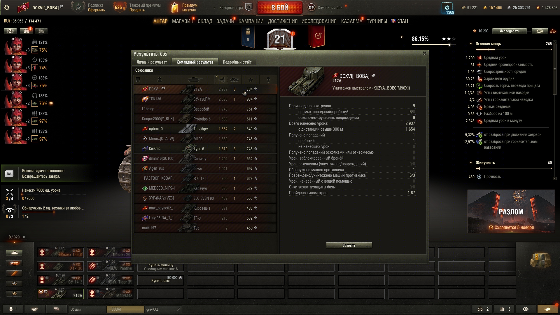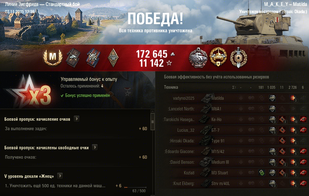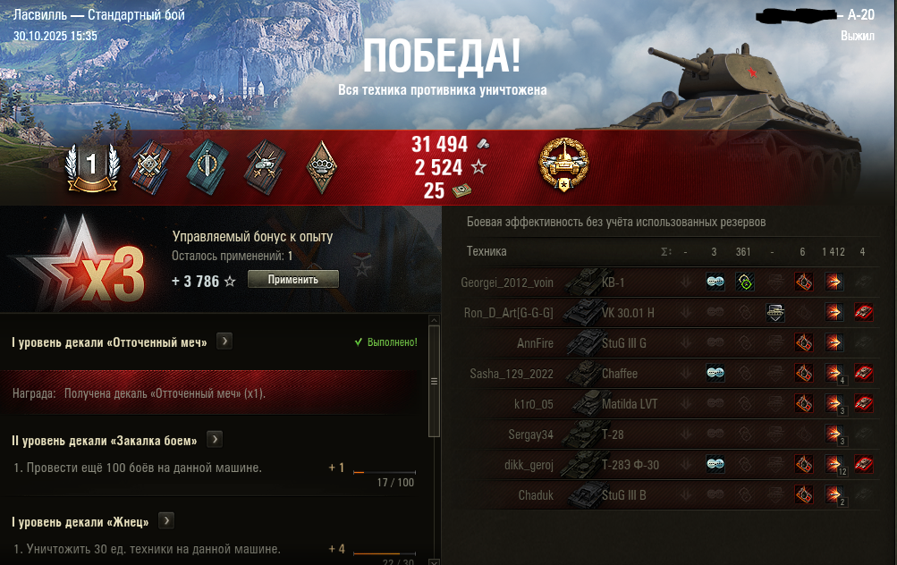 Я думал попыток 10 минимум понадобится, а тут с 3 затащил, да еще один челик на 9 лвл был. Медальку залутал, можно еще 4 танка выкачать если не лень будет