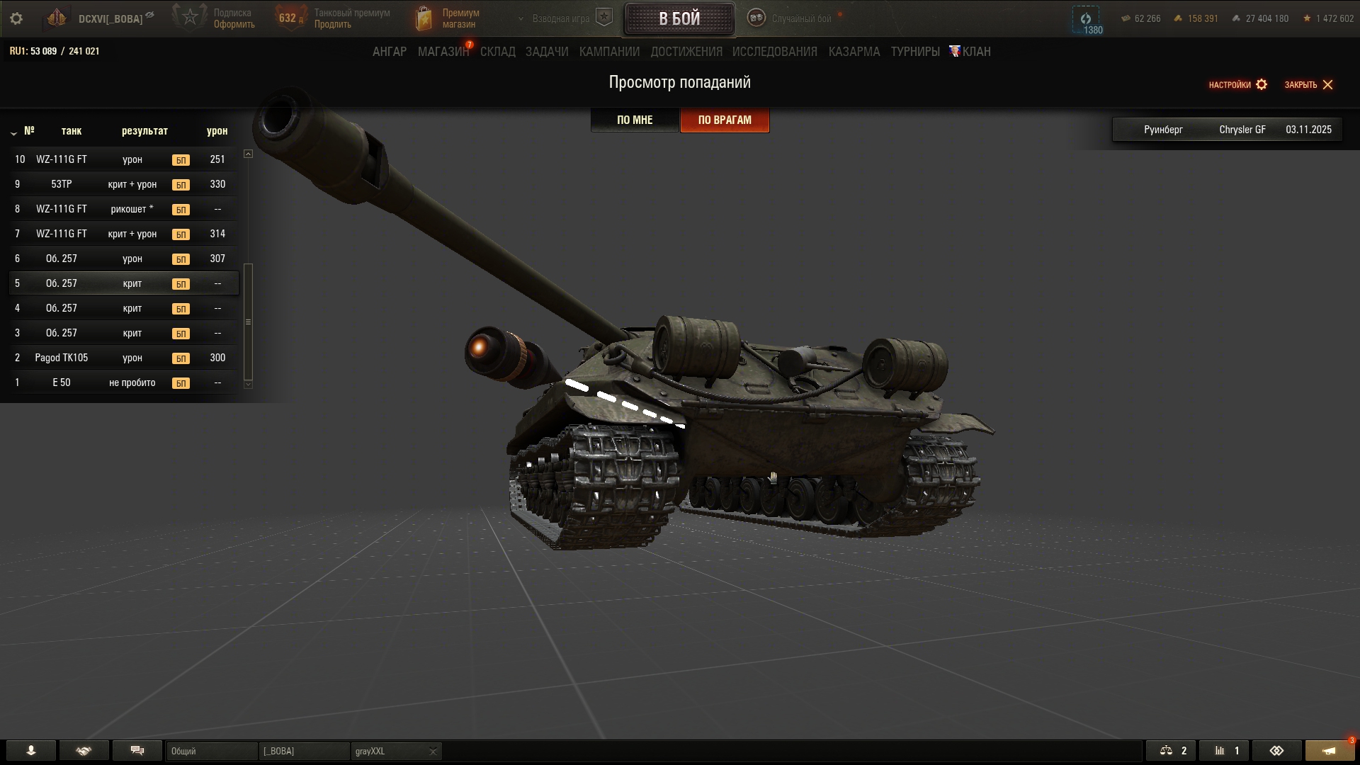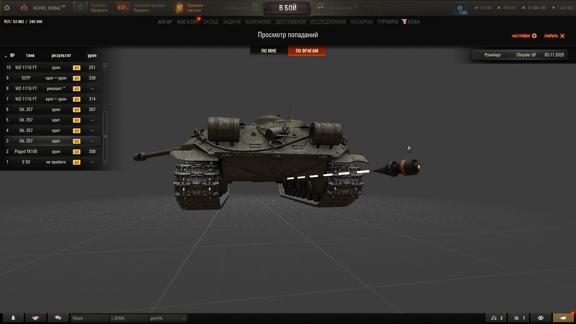 В 2014-2015 годах каждый второй выстрел из Ягдцвая по ИС-3 - это поджог, каждый 10-й - взрыв. Прошивал как пластилиновых, ежжи! А зашел после ввода БЗ, так его в лобовую проекцию хер прошьешь, хотя у меня пробитие ого-го какое. Ну, и с дедами тоже не всё так красиво было.