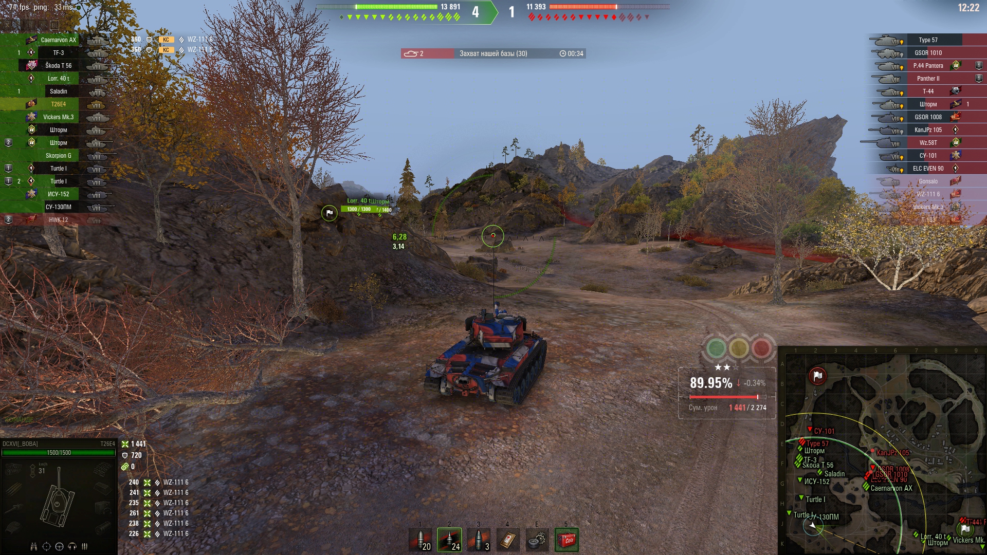 >Сразу второй показали. Тут вонючая подвеска, как на стб-1 или удесе 15/16 >А обилка типа как у уракана в стальном охотнике - каждая следующая альфа больше, но только если пробиваешь подряд.