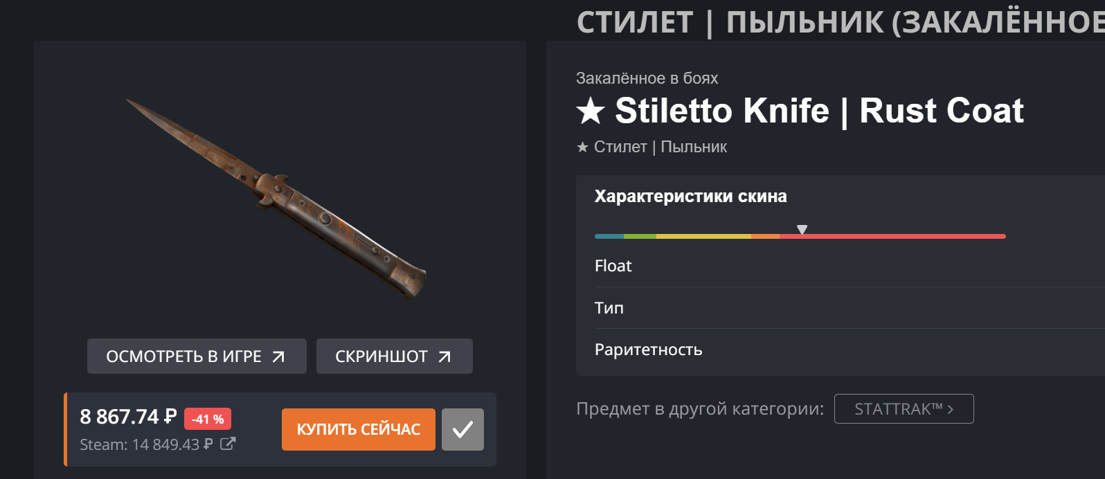 >>50373362 Ну ты не прав, постоянно мелькает флип марбл фейд на лисе за 15к, я уже думал додепать на него но не стал, думаю он опустится до 10 >>50373373 Ванильный стилет за 12 изи прям щас берется, были по 10