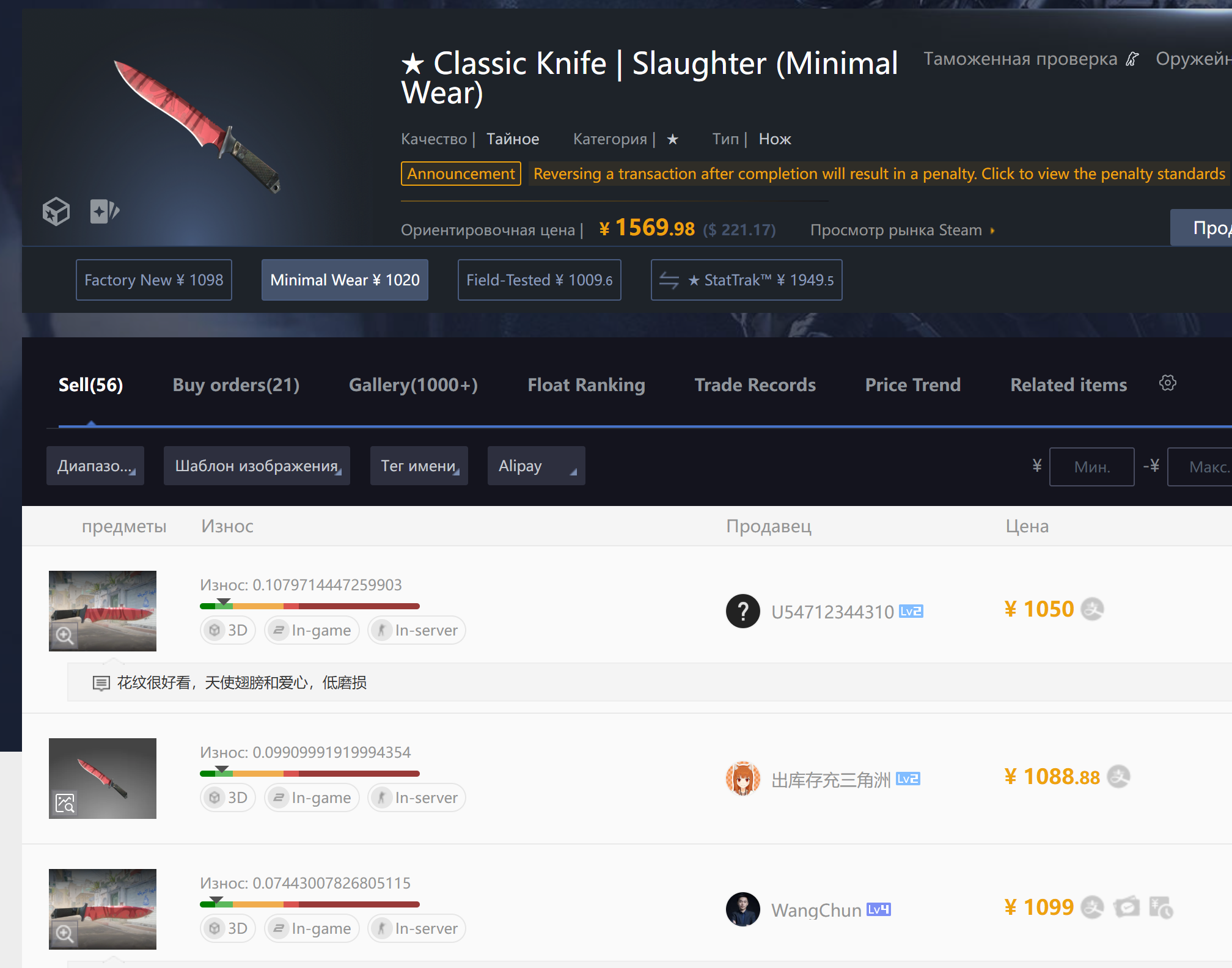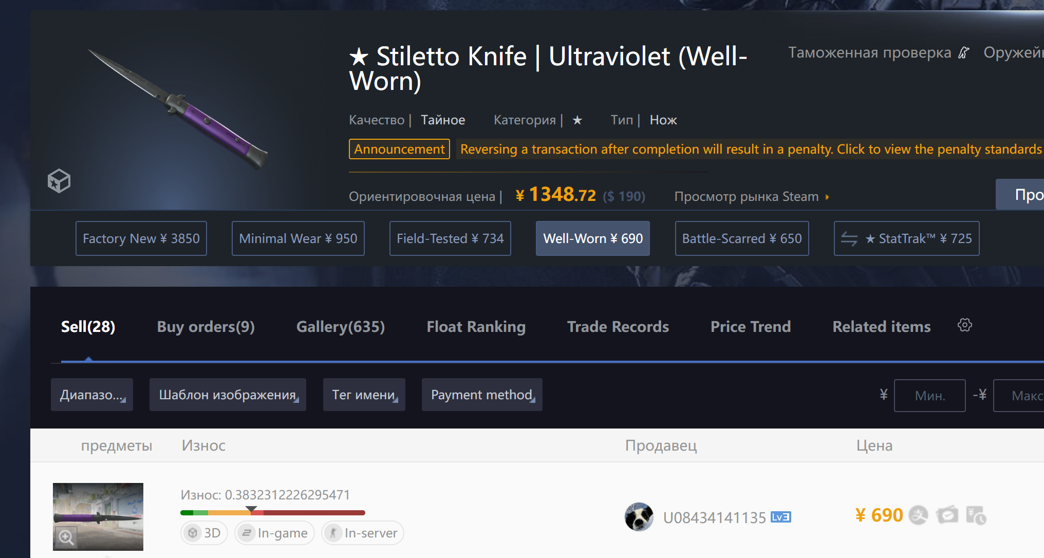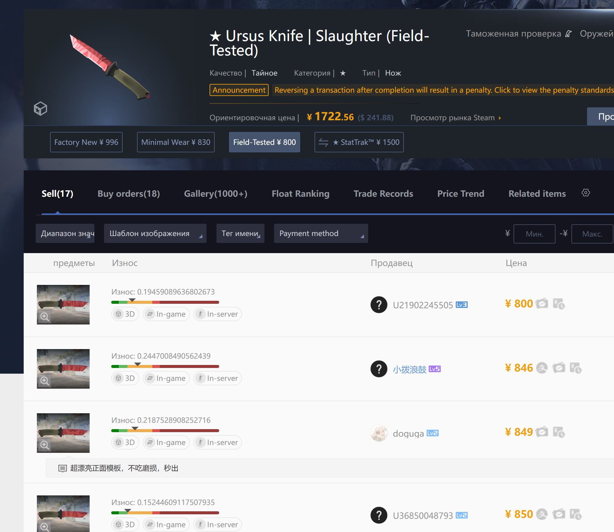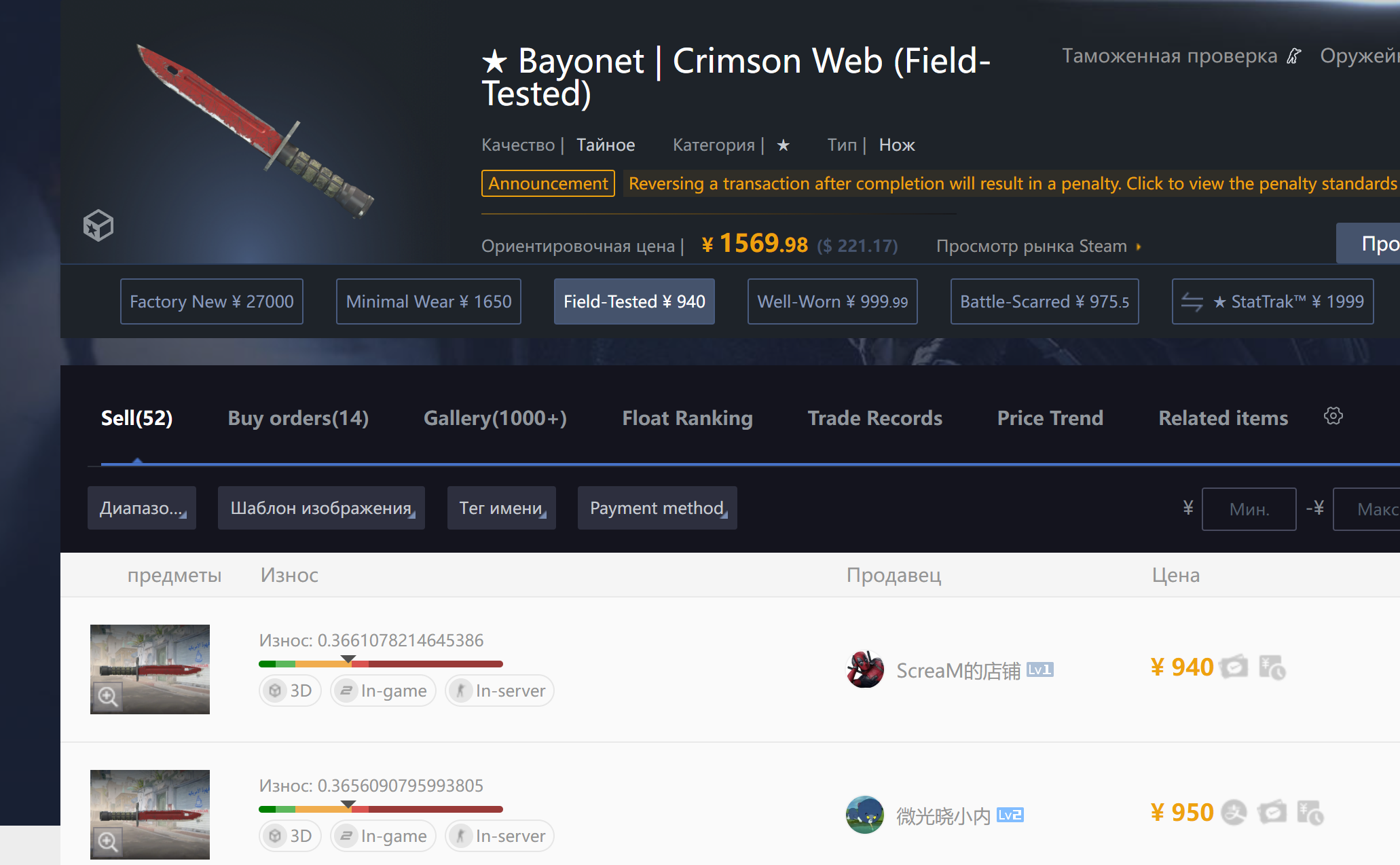 Причем у меня вообще складывается впечатление, что реверсошизы специально продают айтем и реверсят его, чтобы получить бан, который будет спасать их от соблазна как хомяк слить скин пока рыночек качает туда сюда. Поэтому таким образом они хотят заблочить его, чтобы продолжать холдить и не было соблазна слить.