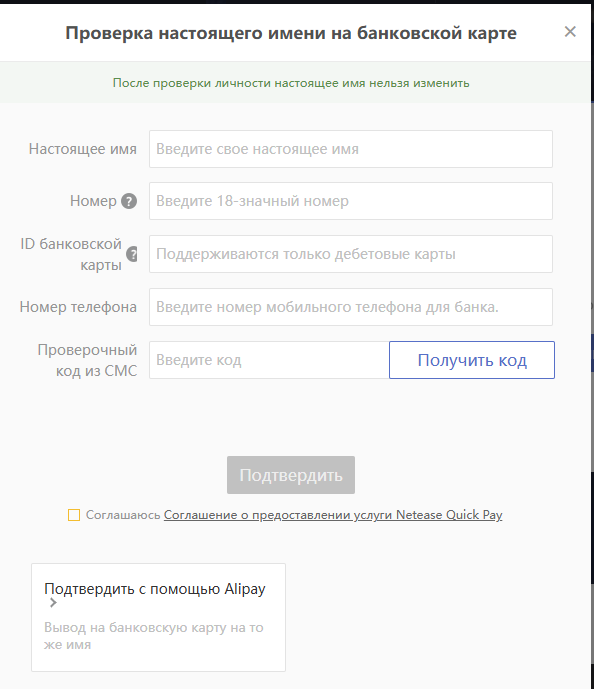 >>50372697 Какой суп тупица? Алипей это кошелек китайский. Конечно его нужно подтверждать , там просят только фото загранника. Ты ру банками пользуешься? Думаешь у них нет твоих данных, паспорта и >>50372697 прочего?