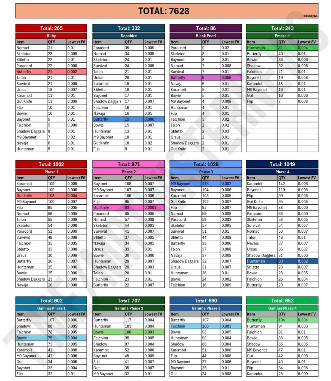 Бабочка, тычки, керамбит, коготь, скелет особенно разноцветные допплеры, вопперы допустимы для пидарасов с анальной пробкой с брюликом в очке