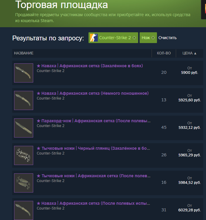 ну че как закупились ножами? я хуею с логики этого рынка красное взлетело в космос - так и осталось казалось бы ну ножей больше стало, они должны подешеветь но нет блять)) в итоге и красное такой овер стоит, что щас крафтить это пиздец какой риск и ножей нема
