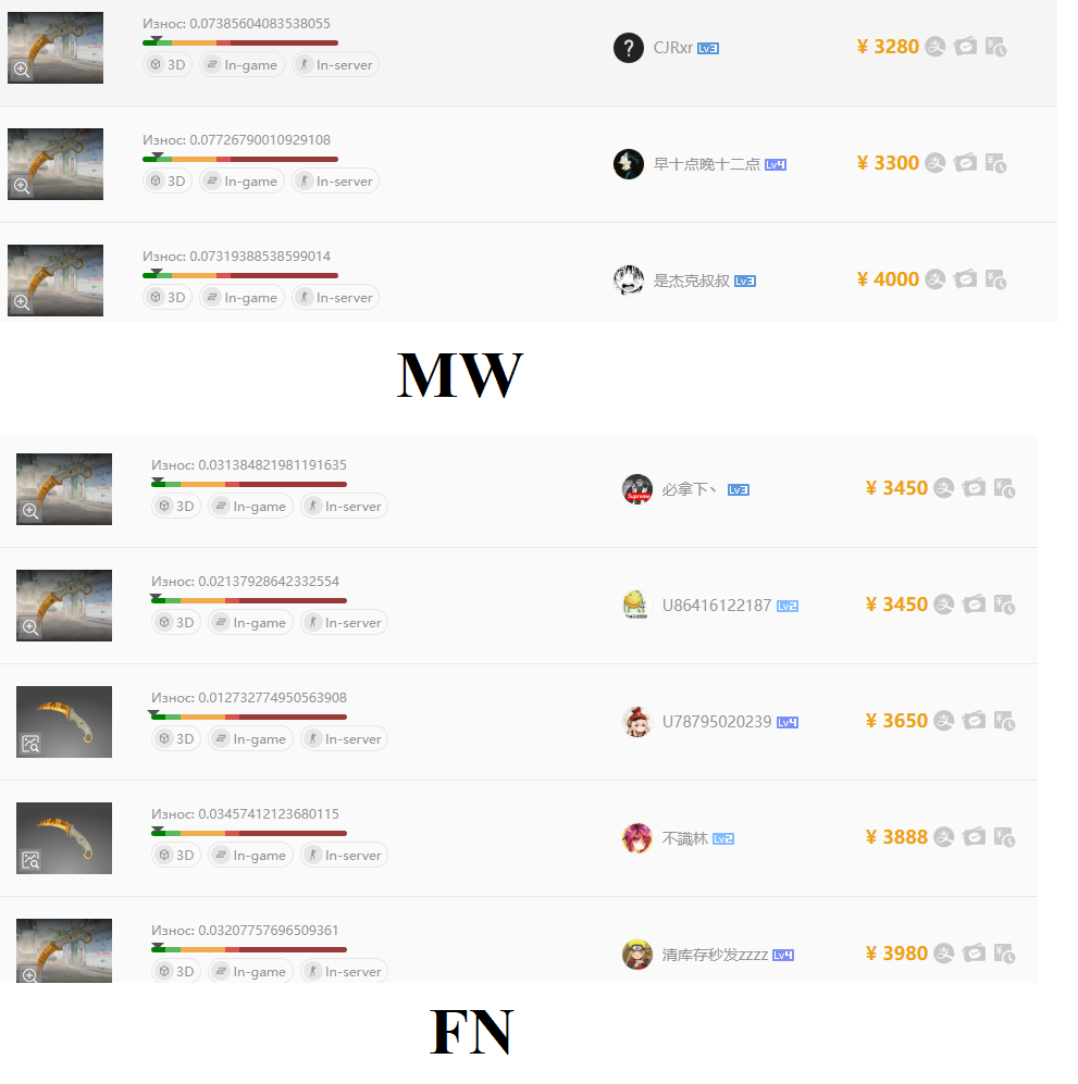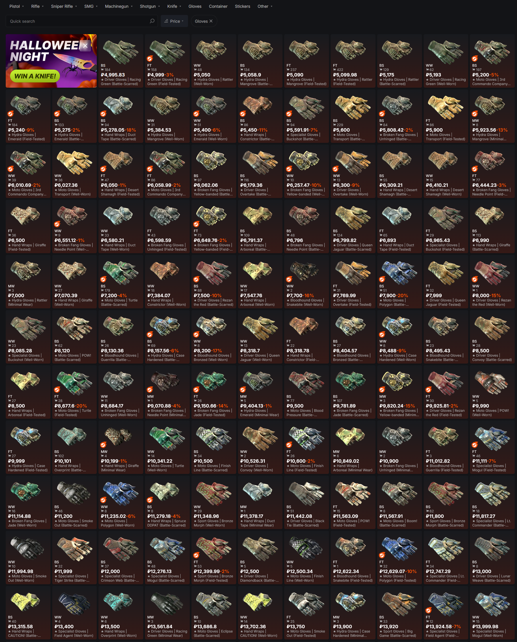 >>50367044 Вчера был gut fade за 9100. Такие медвежие сегодня без паттерна были по 7к. Стиллеты были куча разных до 10к. А этот мусор который ты скинул ему цена будет 2к не больше после 30числа