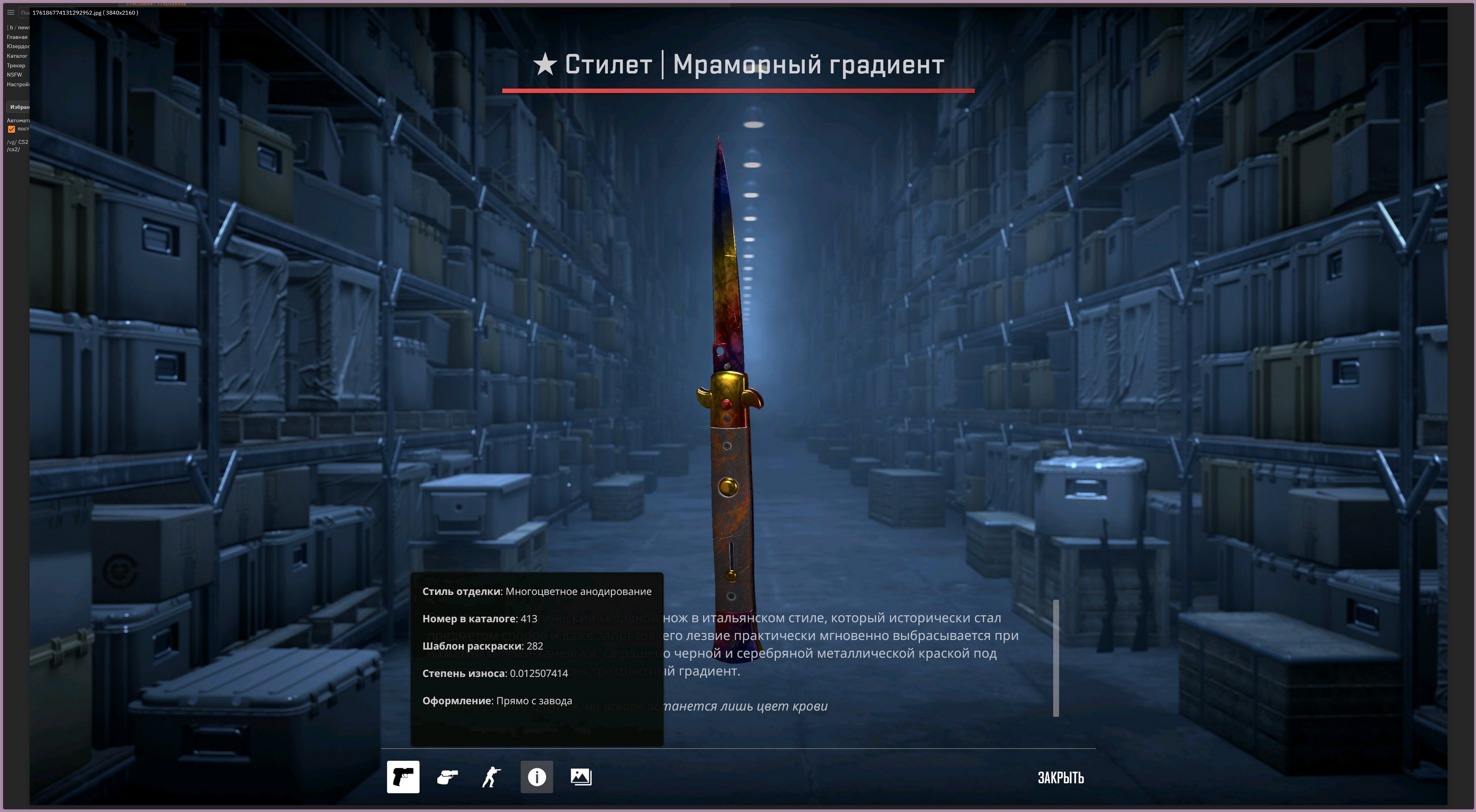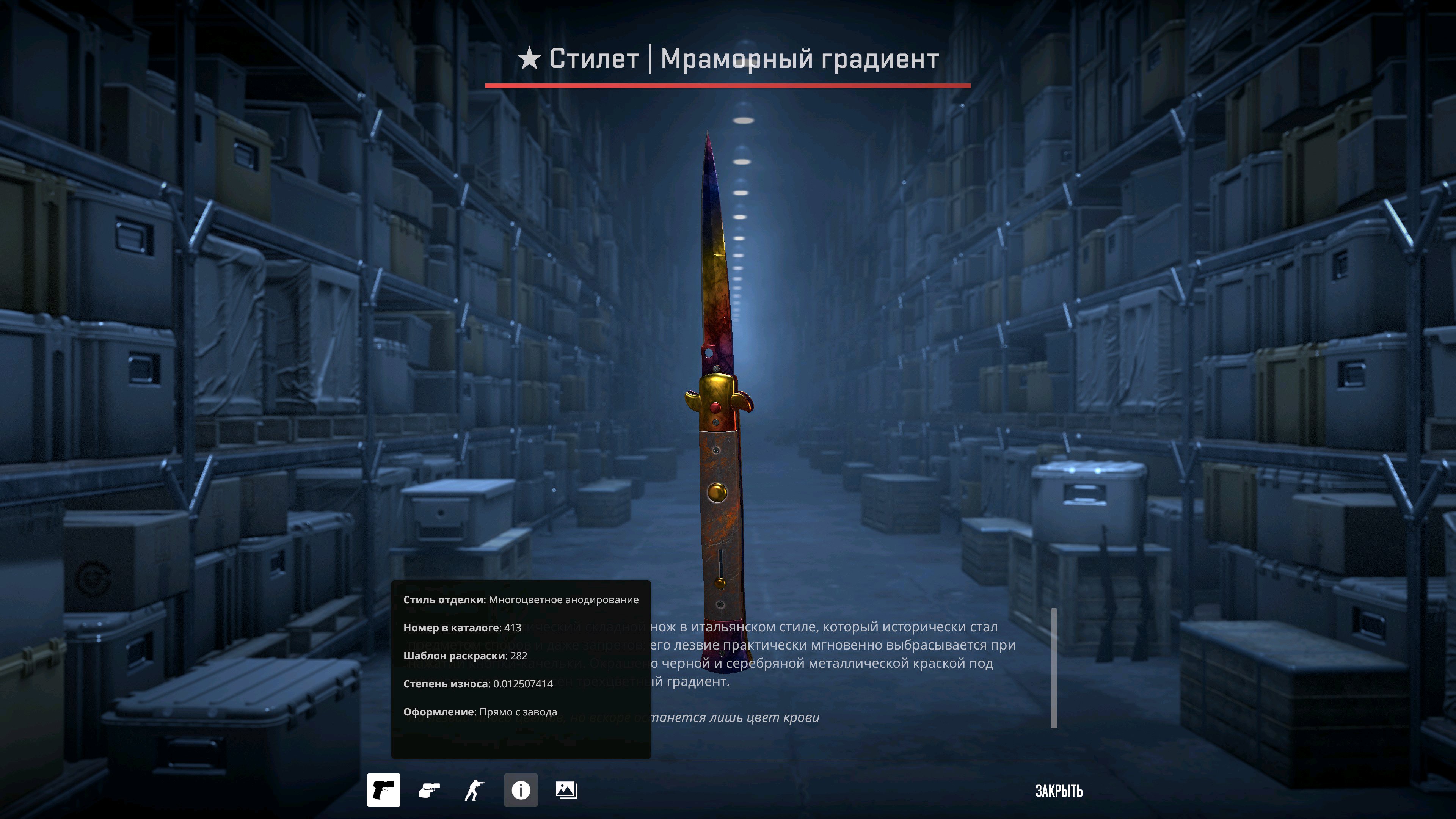 Мда, зелёные перчи со стилетом вообще не гармонируют, нужно срочно покупать перчатки, буду пока в дефолтных ходить за КТ. Нужны либо обмотки либо гидра для такого маленького ножа