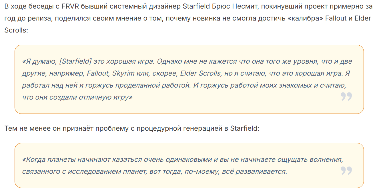>>50371554 (OP) Самая странная вещь в Starfield, которую мало кто заметил, потому что никто в нее не играл, заключается в том, что в ней есть чертовски много «лоров» в игре о действительно крутых локациях и событиях, и все это со странной умственной гимнастикой, связанной с тем, почему их на самом деле нельзя посетить в игре