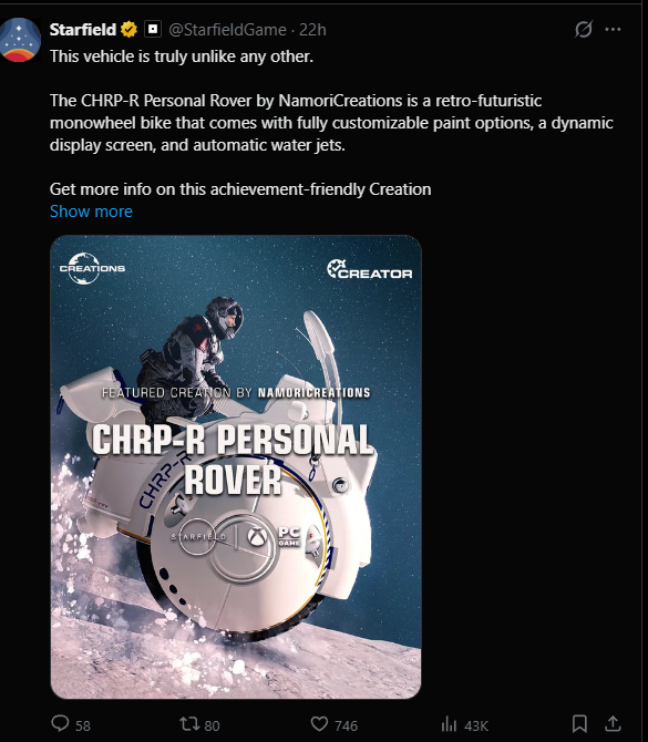Итак, я уже некоторое время погружаюсь в Starfield, и, честно говоря, это довольно увлекательное приключение, если вы увлекаетесь космическими приключениями. Полёты по галактике, высадки на планеты и просто осмотр того, что там есть, действительно утоляют жажду исследования. Космические корабли и планеты выглядят великолепно, и мне особенно нравится, как много можно настраивать свои корабли — это делает всё это гораздо более личным. Также есть куча вещей, которые можно сделать, так что у вас никогда не будет недостатка в том, что можно попробовать. Но игра не идеальна. Модели персонажей выглядят не очень хорошо — как-то безжизненно, из-за чего общение с NPC становится менее захватывающим, чем должно быть. Система навыков — ещё одна неоднозначная картина; навыков слишком много, и она кажется раздутой, а не оптимизированной. И для игры, которая пытается быть в некотором роде реалистичной, странно, что такие базовые вещи, как ночное зрение или улучшенные скафандры, на самом деле не существуют. Это отсутствие становится заметным, когда играешь некоторое время. В целом, я бы сказал, что Starfield — это солидный и увлекательный опыт для тех, кто хочет исследовать космос и возиться с кораблями. Игра не идеальна, но если вы готовы смириться с некоторыми странностями дизайна, то она определённо стоит того.