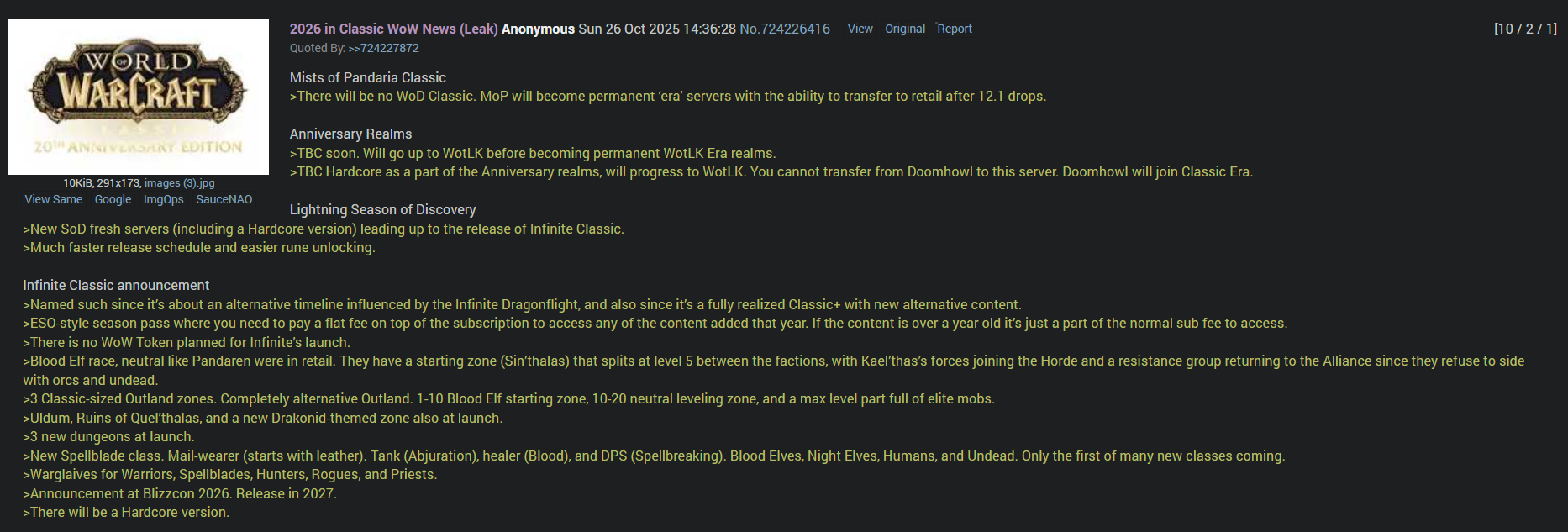 Я вот не вижу смысла в Дреноре / Легионе и т.д. Классике. Это всё хуйня, рано или поздно ведь будет Шедоулендс классик, а это мем ебаный вообще. А лет через 10 классики догонят по прогрессу основные сервера и будет 2 одинаковых вова.