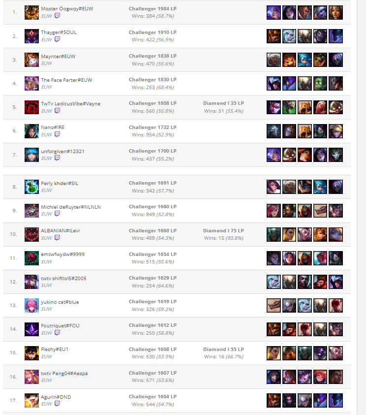 >>50377782 Нда отп мета это тоже миф. Мб среди этих есть отпшер, но я глазами пробежался 90% точно на разных чарах плеят.