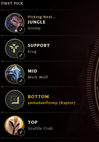 очередная игра на автофилле. спасибо риот. видимо лесник это самая популярная роль в игре ведь каждый раз когда я пытаюсь на нее попасть меня кидает на бот, топ, саппорта, даже чмидера, но не него. увы
