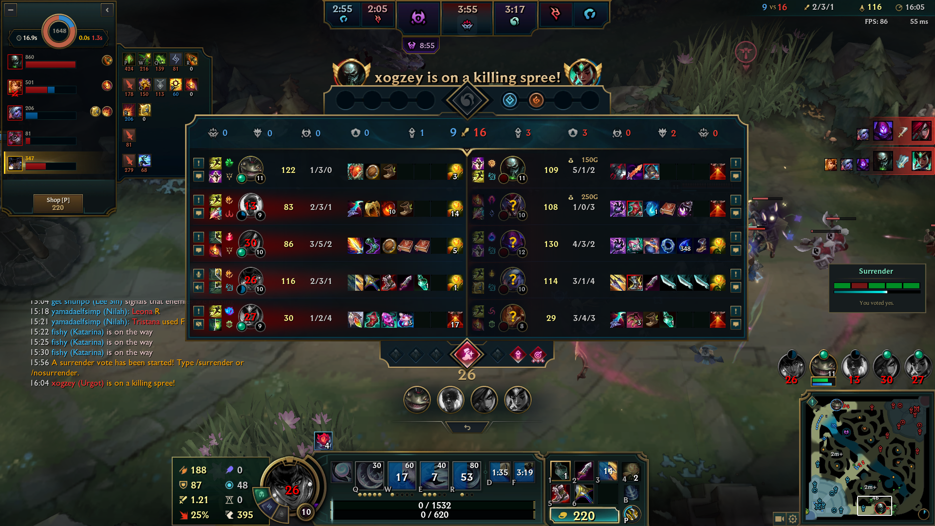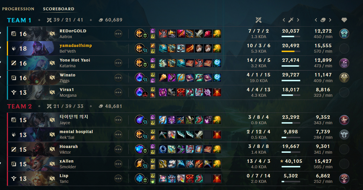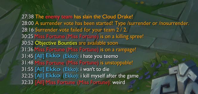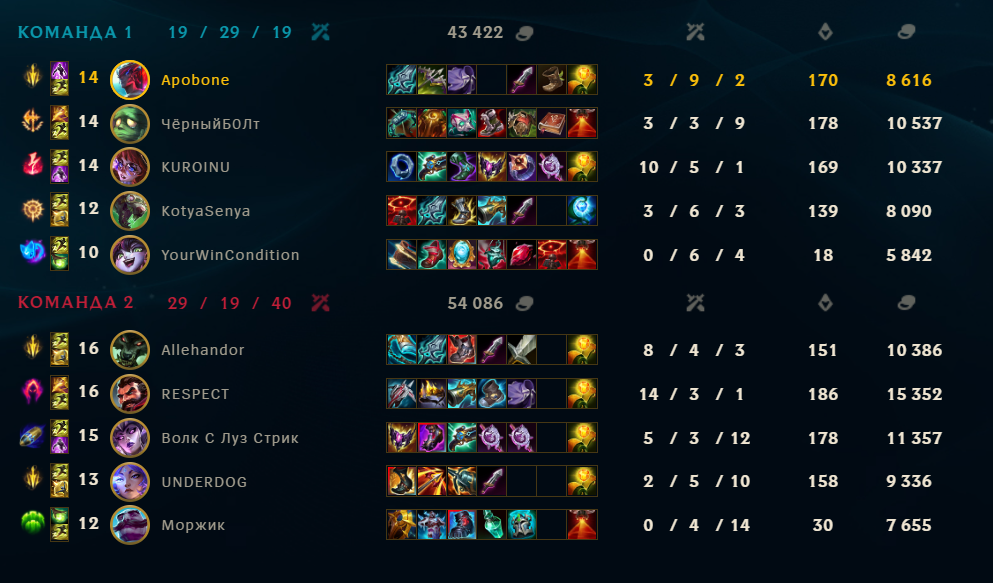 Бляя, некст 2 катки, наконец-то позволили затестить чемпа. В первой катке гигасмурф на акали 17й лвл аккаунта, который собирает 5 слотов к 35 и бегает с фулл настаканным меджаем. У моих включен фулл-нева-сурренда мод, закрыт в клетке на 43 минуты. Некст катка мы побеждаем, только появилась возможность забилдиться и потестить дамаг и разные ситуации - хуй там, враги моментально суррят на 20-й. Так мерзко от такого.