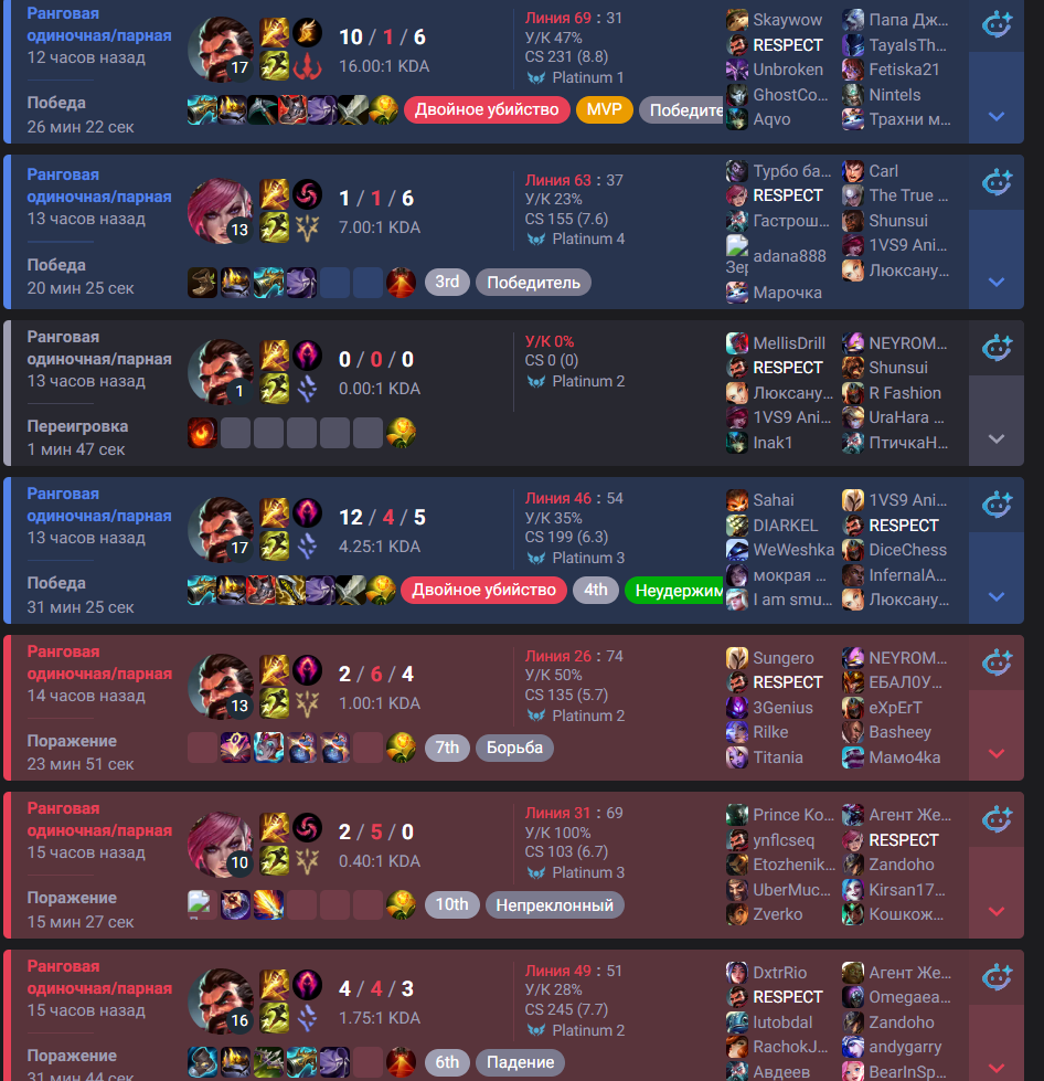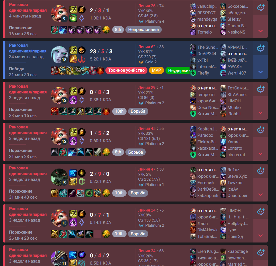 Слава Богу, что это пока обычка. Но уверен, что и в ранкеде такое бывает, иначе я хуй знает как существовать и аппаться на саппортах, и уж тем более на вардилочках