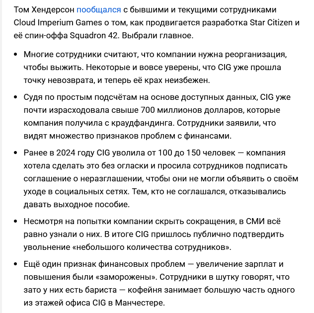 Спасибо вам за то, что продолжаете делиться своим временем, отзывами и страстью к этой вселенной. Star Citizen и Squadron 42 существуют благодаря вам, и я никогда не буду воспринимать это как должное.