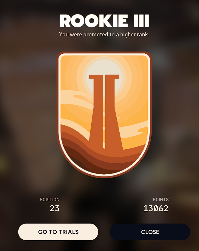 Раунд испытания несколько дней длится, за это время сидишь ставишь рекорды в категориях этой "недели". Если не играть в игру, то будут по 1 рангу в цикл забирать