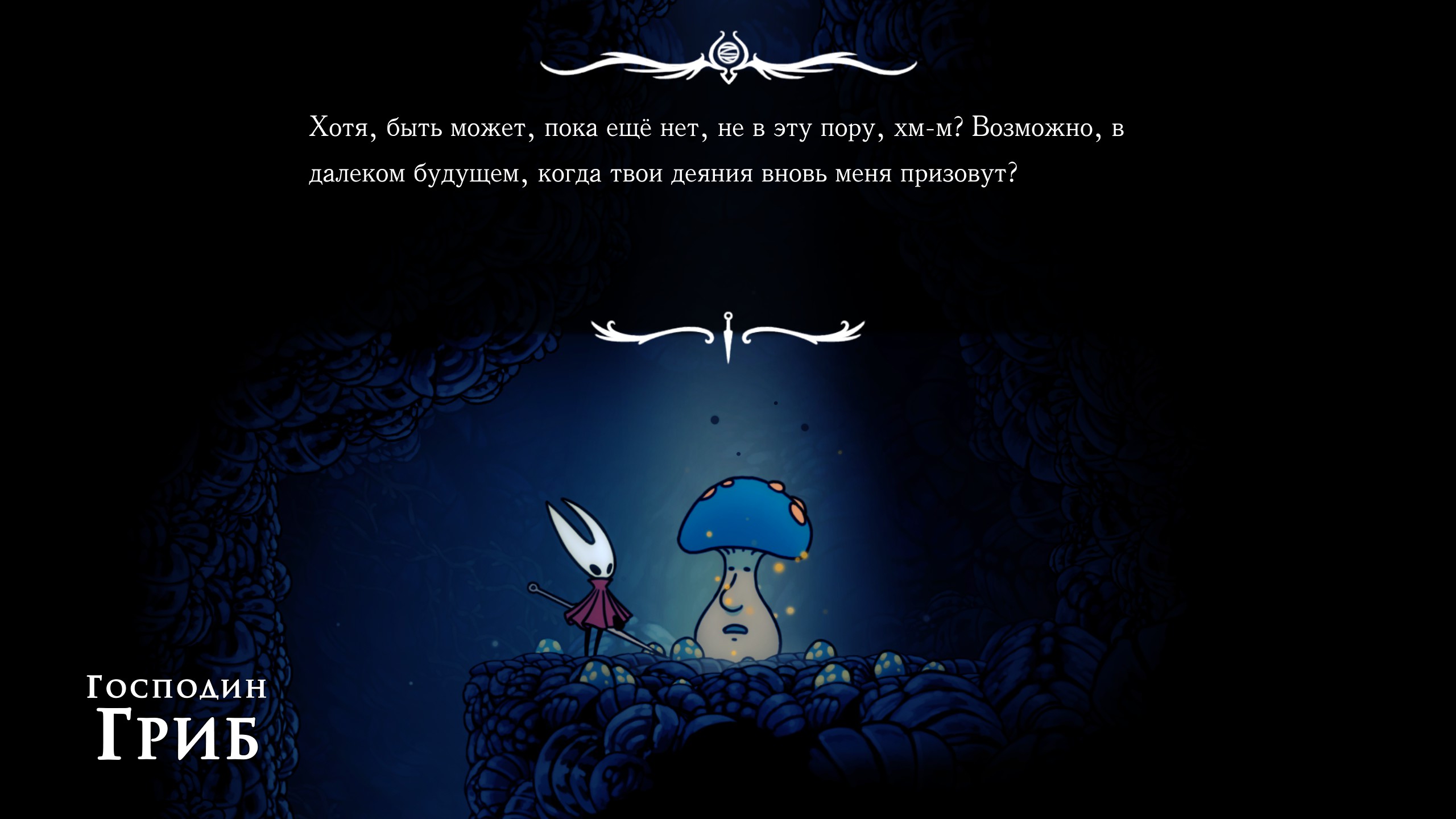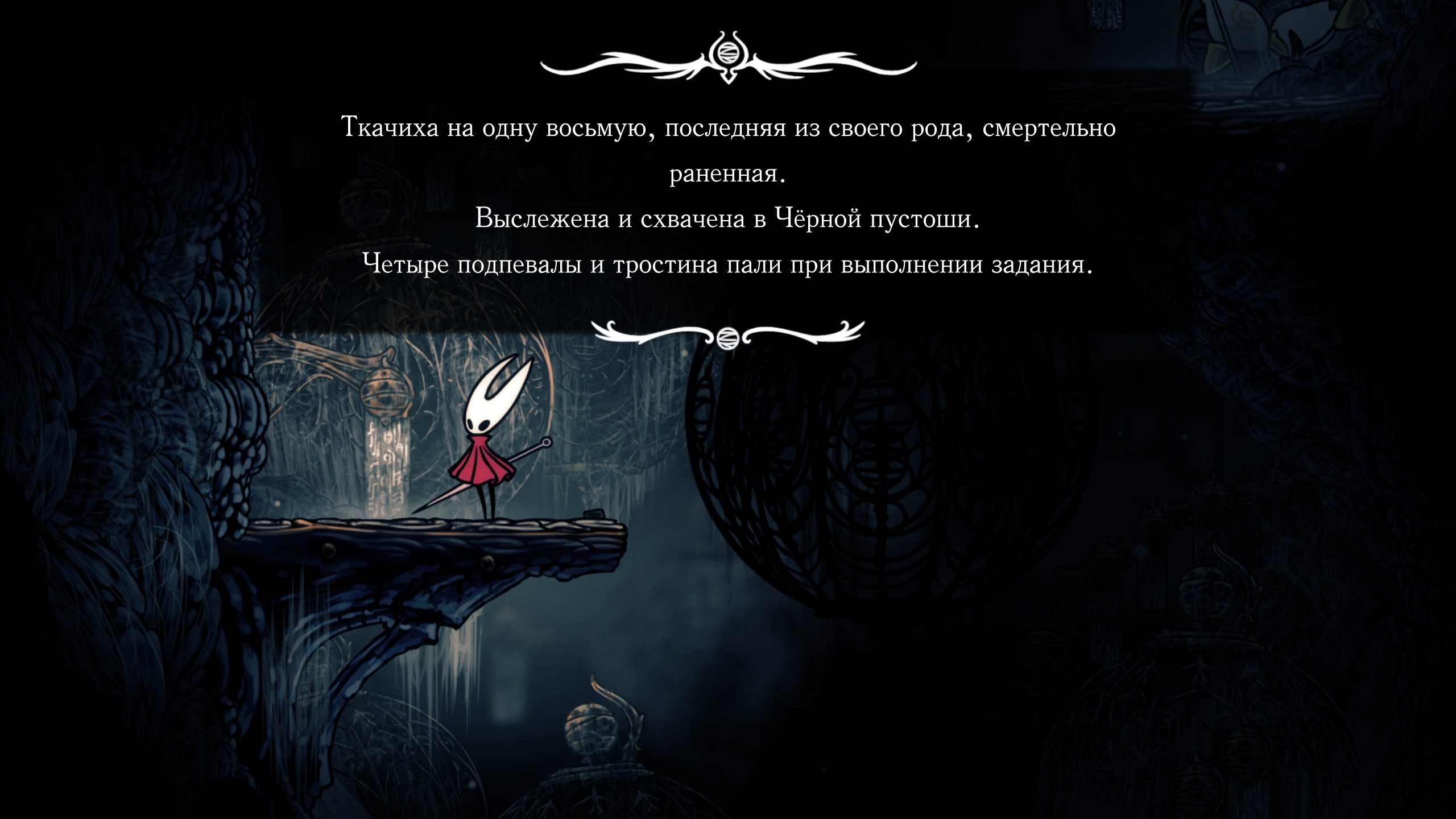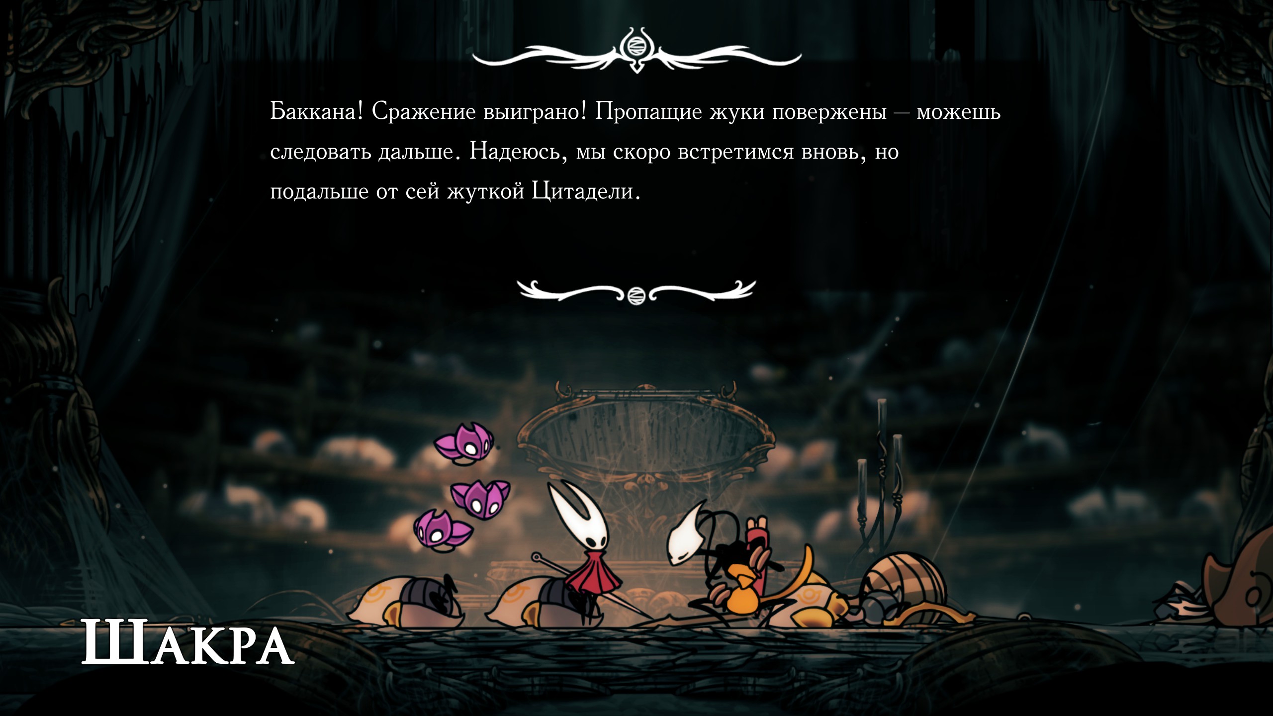 Доп к >>50478612 : В финале героиня сливается с силой босса и превращается в паука — Фарлум не спасён, а Цитадель разрушается. В смысле не спасен? Если Хорнет теперь главная, то почему она не может его спасти?