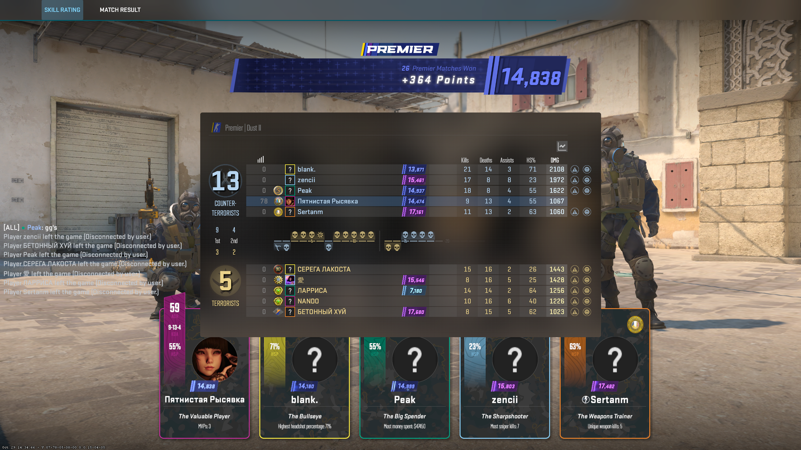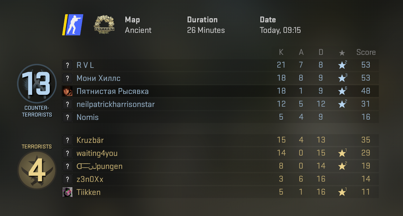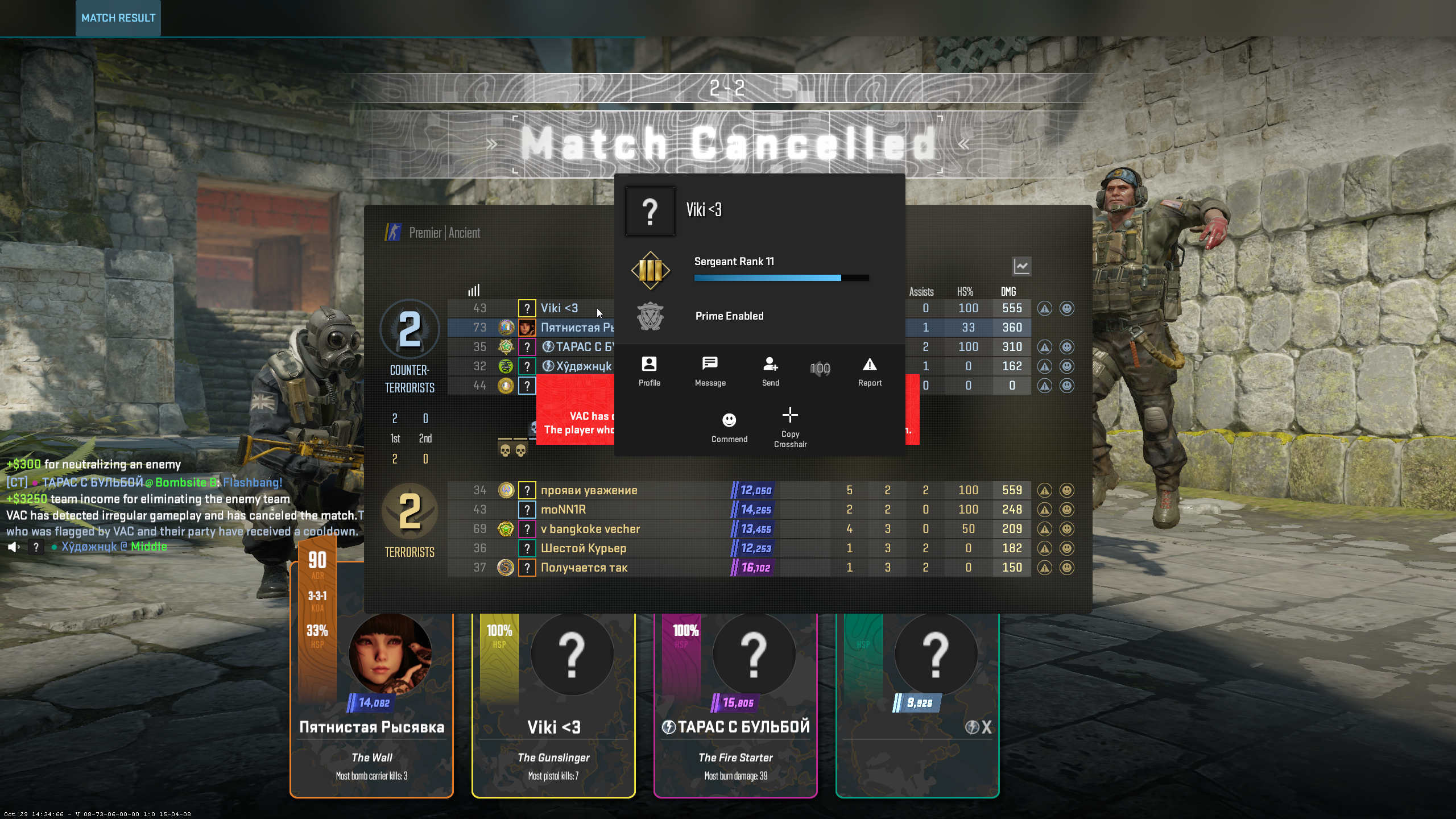 кентик вак выхватил бегал с дигла тапал всех в дым и прострелы и всё на свете а его тиммейт в пати афк простоял все раунды, скорее всего это он сам с собой, чтоб не кикали в итоге через 4 раунда вак, но думаю ему не повешают, 20ч пройдет и свободен