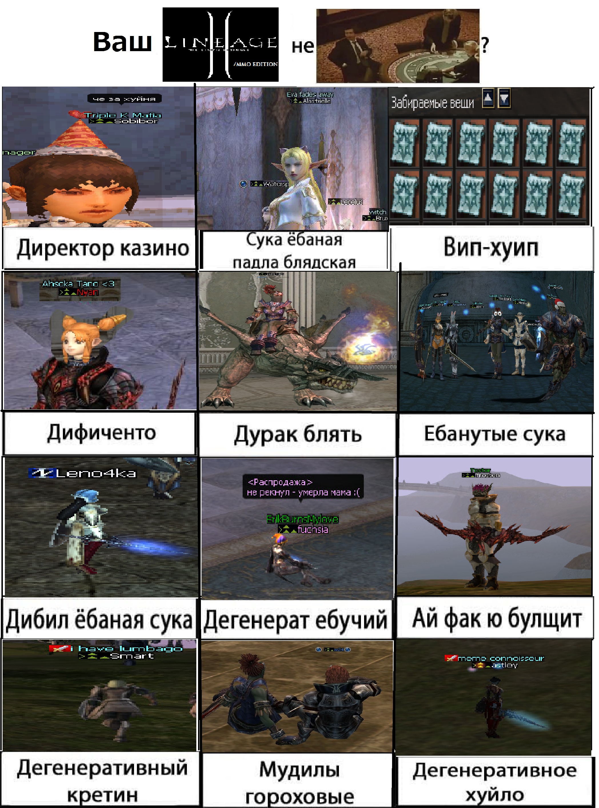 Тред от мира Оригами, легитимно обсуждение игр (L2, LW/L2:R, L2M) и серверов (официальных и не очень, в т.ч. проект Lu4) этих игр, а также контента, генерируемого анонами в процессе игры и связанным с игрой. По традиции, личные бложики-дневнички одного анона на мертвом сервере мертвой игры только приветствуются.