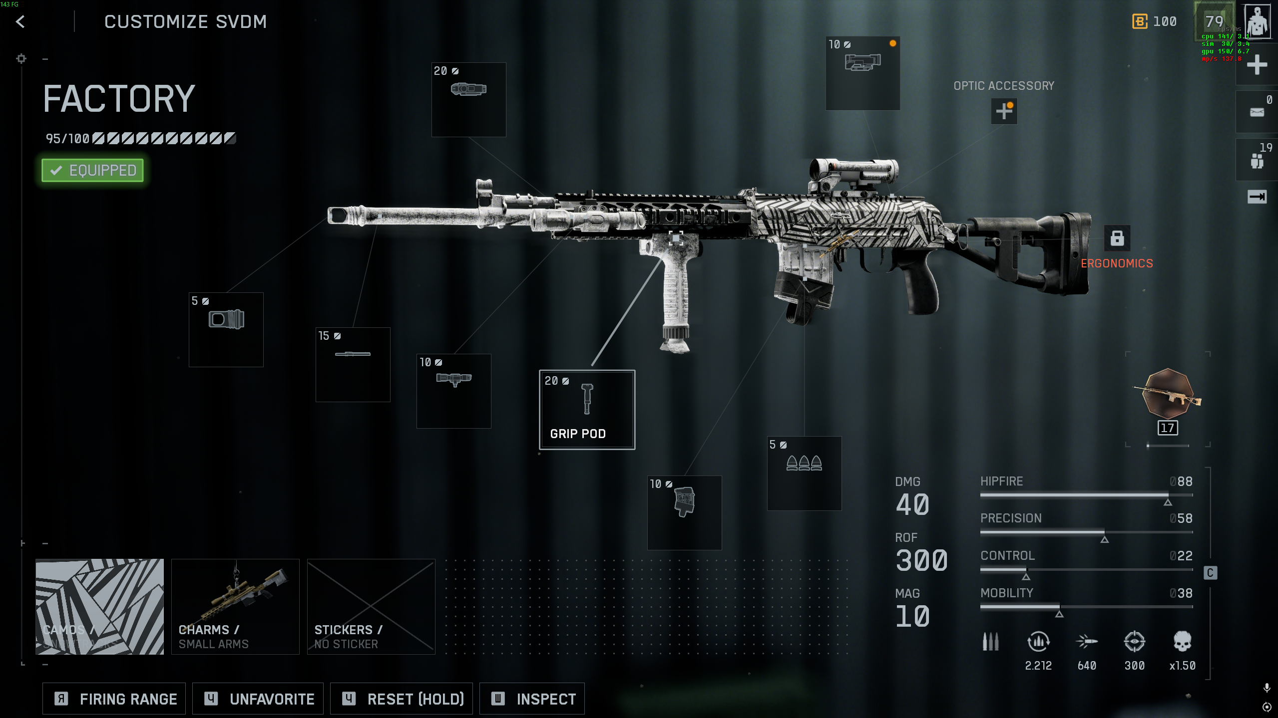 Кто-то свд или в целом дмрки собирал? Не вижу смысла собирать их в стабу и точность, мне она нужна на средних дистанциях перетапать любителя позажимать, поэтому все вкинул в скорость прицеливания и в хипфаер на сдачу.