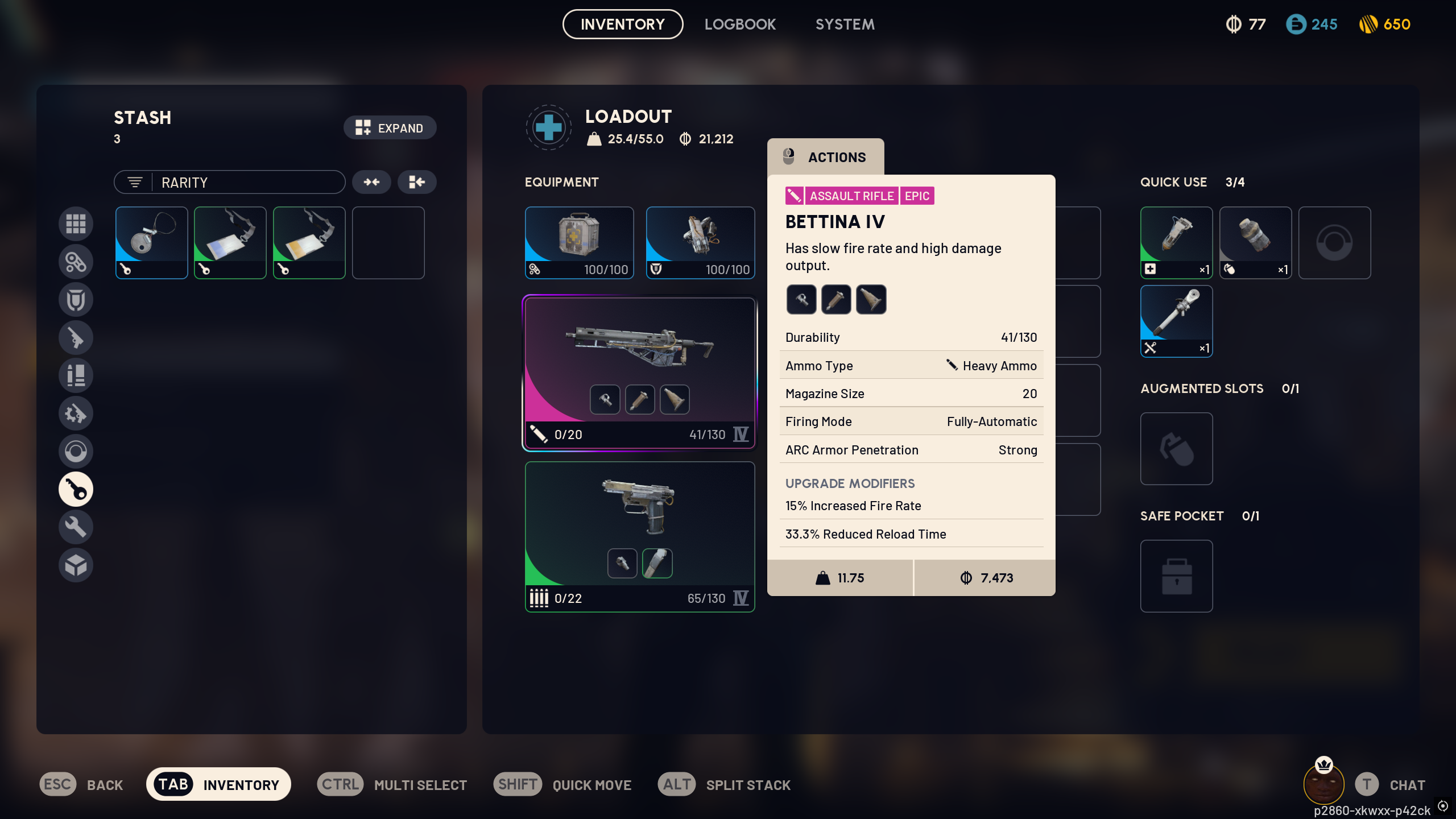 >>50411010 В каждом калибре есть 2-4 метовых патрона. Это количество уже сравнимо или даже перекрывает весь лут в арке. Не говоря уже об иммерсивности, что в таркове 95% предметов взято из реальной жизни. В арке же у тебя весь лут это фиолетовая железяка/штука, которая разбирается на синие штуки, которые разбираются на зелёные штуки. Ну и около сотни применяемых/надеваемый айтемов.