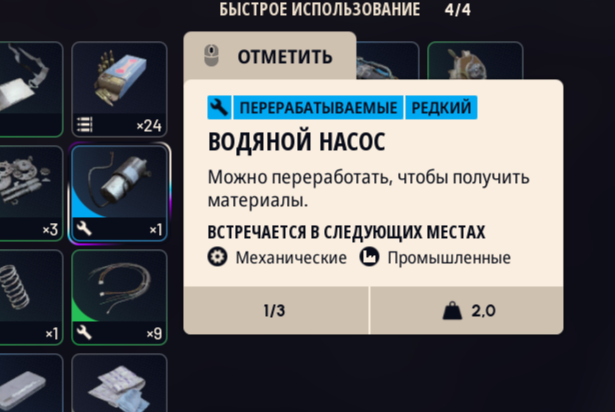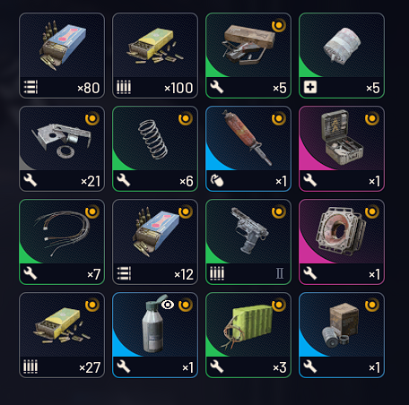 Далее ходовые провода, пружины, скотч, оружейные компоненты, механические компоненты. Это все нужно для крафта оружия. На второй рюкзак нужны магниты и электрические компоненты.