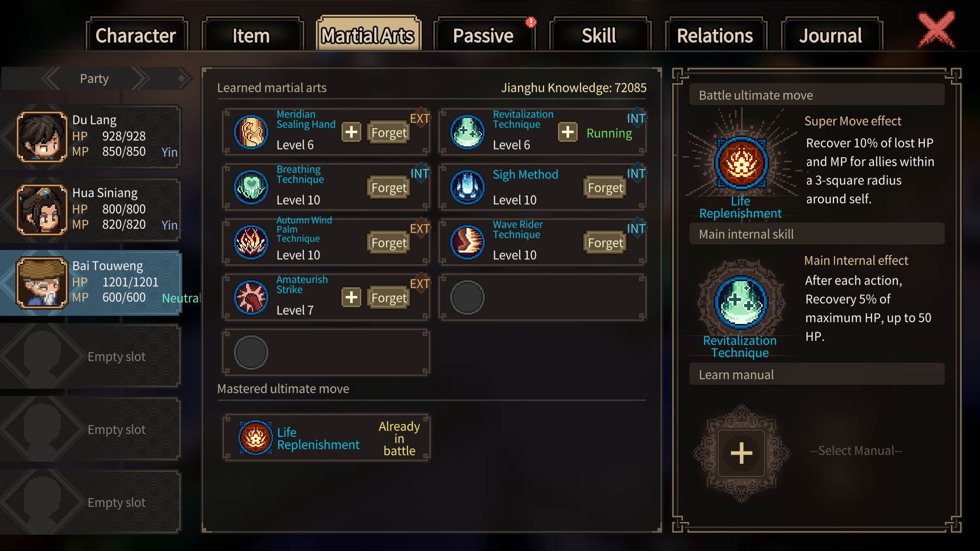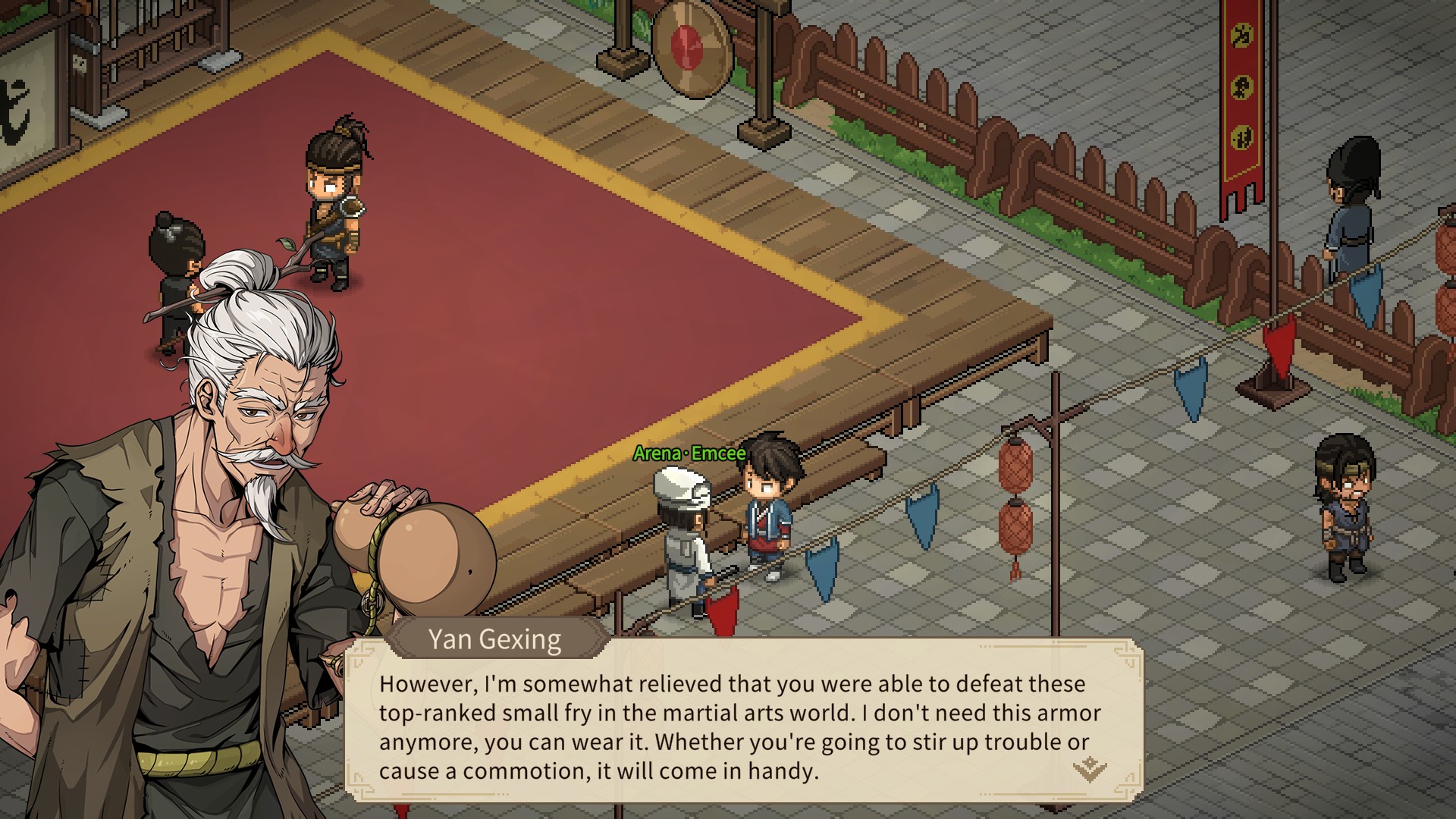 >по hero's adventure твои рецензии почитал Да я пока только 30 внутриигровых дней преодолел. Как я уже писал в предыдущем треде >>50394380 →, главный плюс- это что в сравнении с большинством рпг эта игра живая. Из недостатков- жесткий гриндан небоевых навыков (у меня только эксплоринг дорос до 4 ранга, все остальное- максимум на 2) и довольно простенькая боевка. Приемов хватает, но в боях я реально половину врагов ваншотаю, треть ваншотает меня, а с остальными идет обмен ударами, пока кто-то не ляжет. Правда нотку безумия в происходящее вносит наставник и глава секты моего ГГ, деревенский дед-алкаш, который появляется на подмогу и может затащить некоторые бои. Все-таки в Tale of Wuxia с этим было поинтереснее по ощущениям. Но я продолжу.