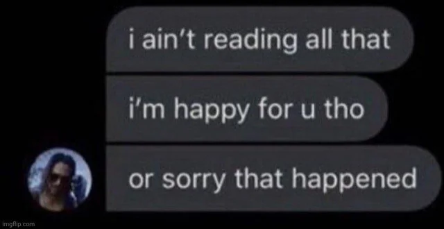 >>50403039 Забей, тут местный повесточный траль, на всё его ответ "и что". Всё всё понимают а самом деле, потому что не увидеть это надобыть имбецилом. Ну может ещё пориджем.