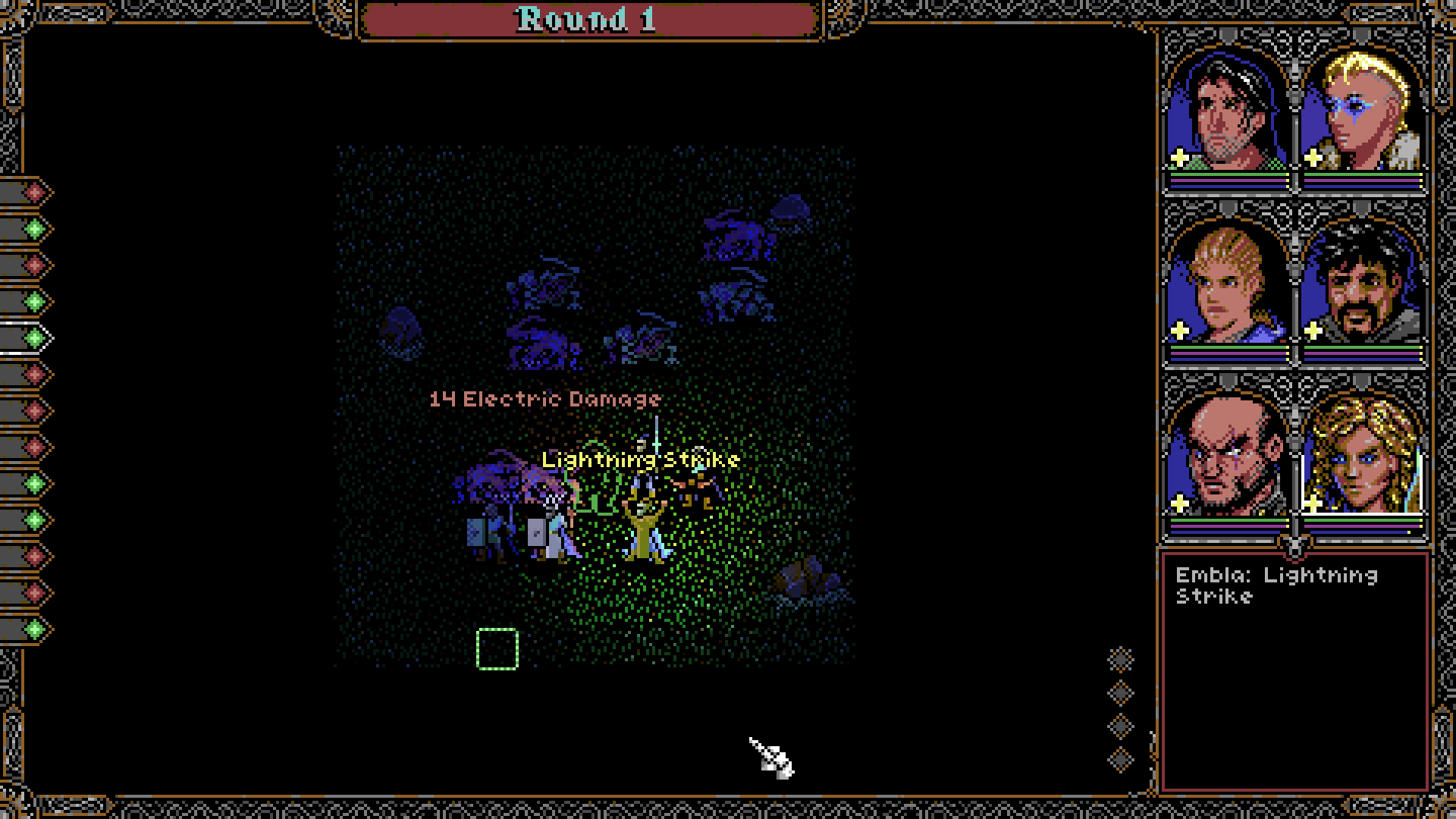 Ну, смотрим. Эмбла, максимально вкачанная на урон (spell aptitude 11) пукает молнией на жалкие 13 урона. Каскад не срабатывает, ибо рандом, а на харде кубы в сторону врагов подкручены. Катька тут же бэкстабом наваливает 86 урона и кислотного еще добавляет и ваншотает. Роланд бьет дважды (потому что мультиатака работает всегда) в районе 25 + 12 элементальной присадки оружия, убивает врага и за счет клива получает еще атаку. Блин, даже рейнджер Ибен с МЕЧОМ (у меня ГГ с луком, поэтому пришлось усача делать мусорным мечником, чтобы стрелы не жрал) выдает больше 20. И при этом они это делают сколько угодно, а не сжигают всю ману за 9 кастов.