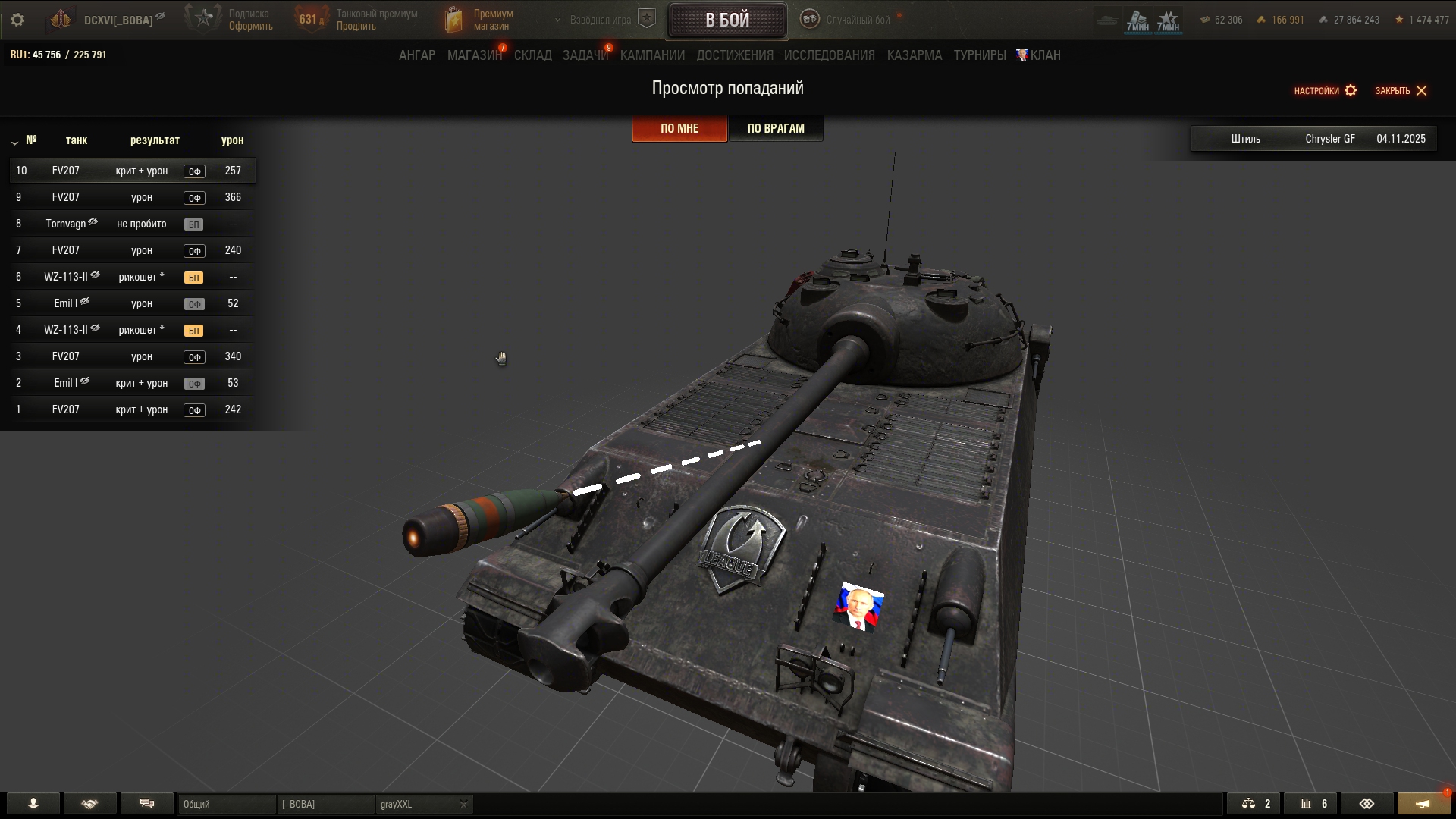 Все, хрюслера в кал записываю. Помогите найти урон, который мне дали не фугасом. Играя на хрюслере и перше параллельно, возникает чувство, что при игре на первом - опускаешься в чан с говном, а при игре на втором - всплываешь и делаешь глоток свежего воздуха. А, ну и опять случились те самые 5%.
