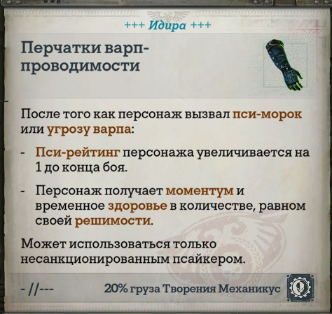 Хули в рт бонусы для еретика такие всратые? Там, где условный догматик получает халявный огонь при критах на первом раунде и Аргента первой же очередью из пулемета поджигает просто вообще всех, еретик получает херню какую то. Из всех бонусов хорош вроде только последний, который урон увеличивает. Очень хочется отыграть еретика-псайкера-дд в соло, но просто нет нормальных билдов, все своих дд через догматика делают