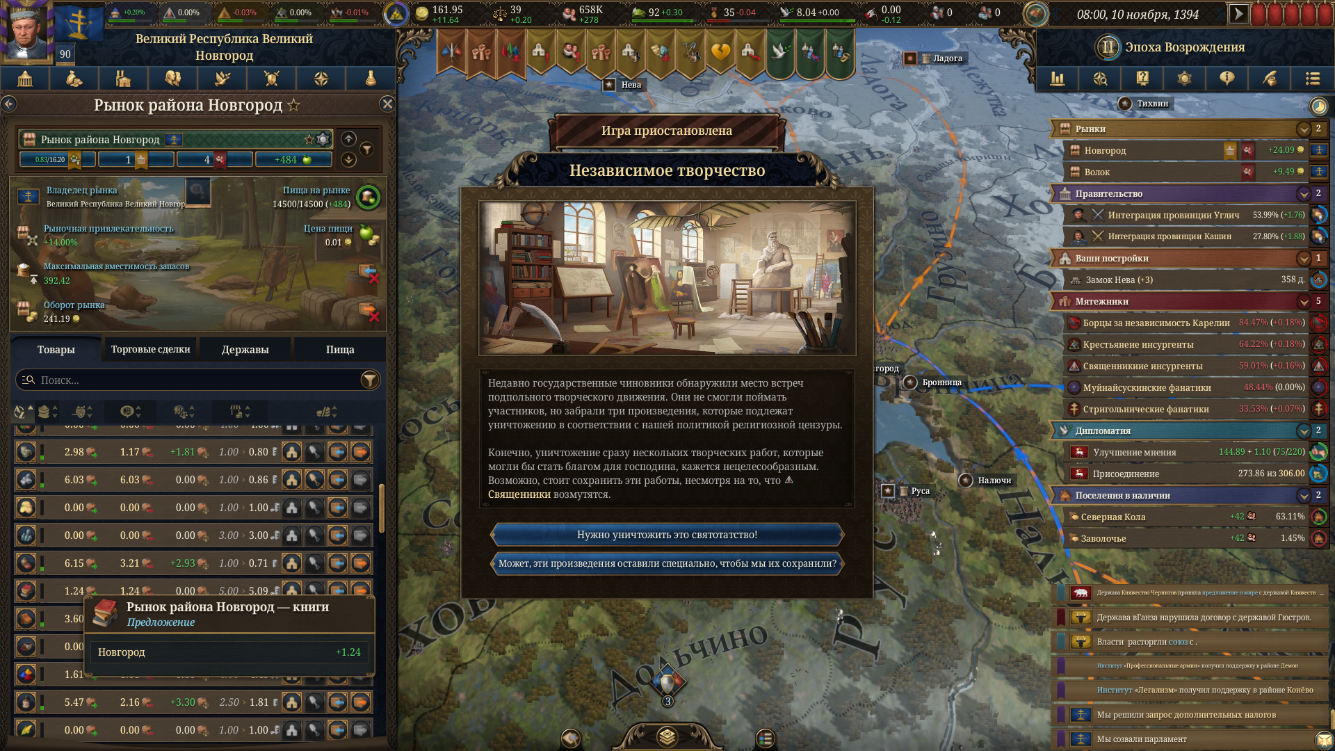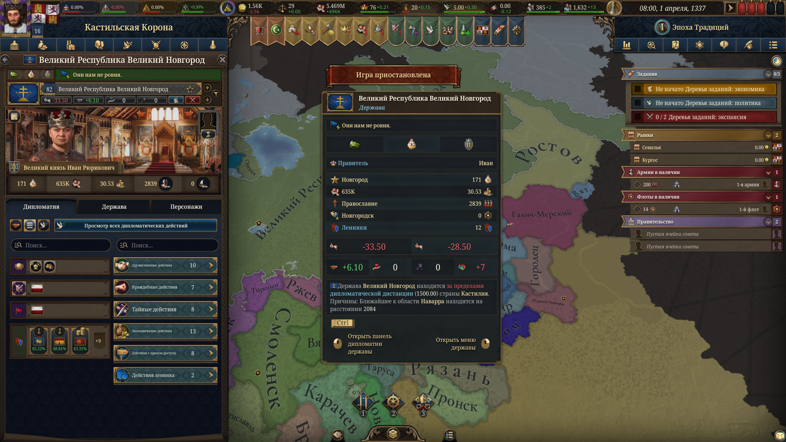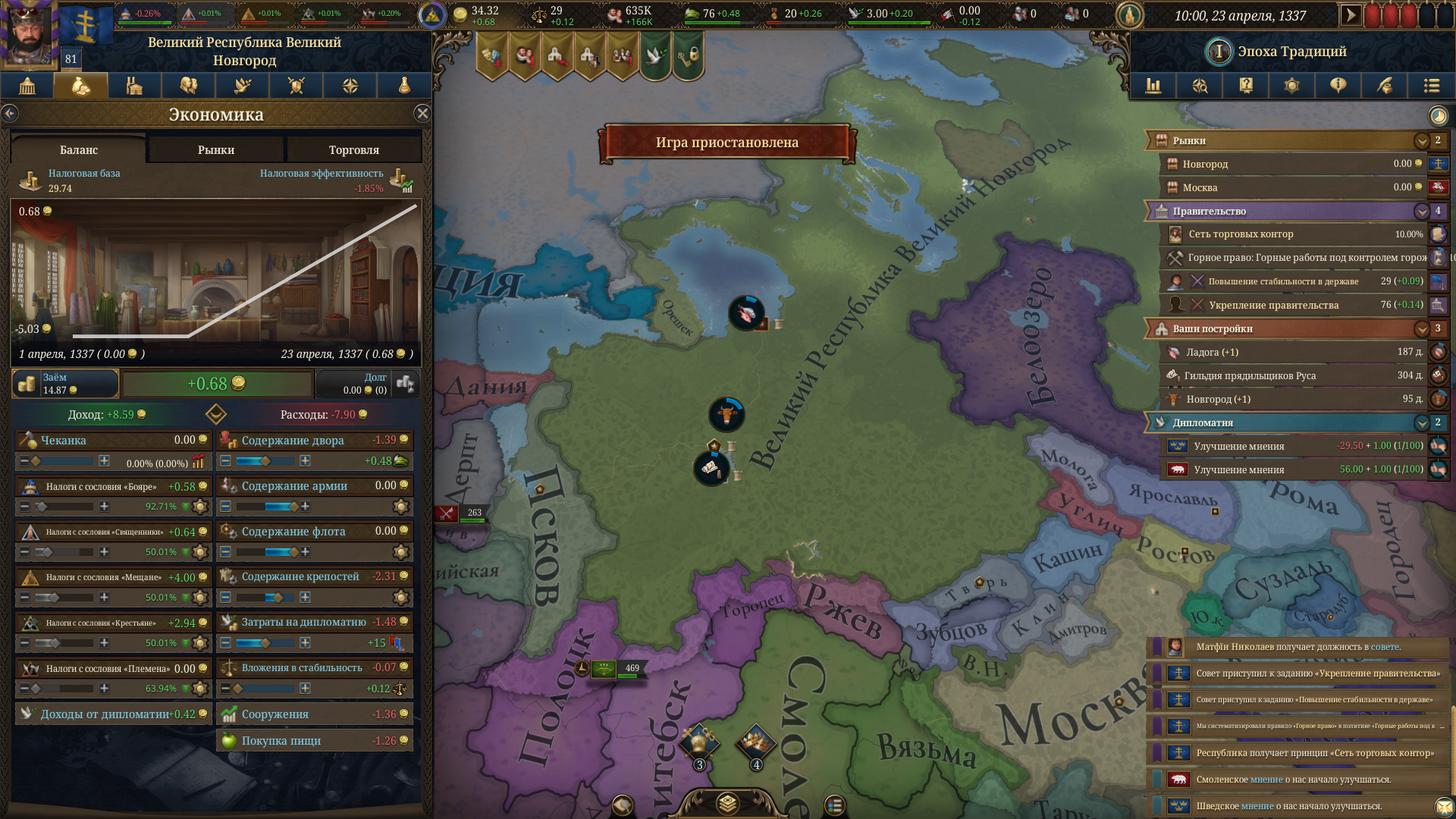 Немного поиграл за османов, сейчас сел за Новгород и ничего не понимаю. Почему я не могу чеканить монеты и где моя прибыль от торговли? Я же ТОРГОВАЯ республика.