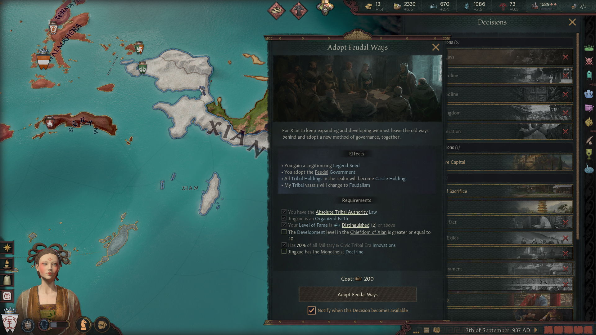 2 - Македония, на удивление, есть в игре. Империя создается когда берешь решение на восстановление Римской Империи - Византия разбивается на Иллирию, Македонию и Анатолию, так что кастомную Империю мне создавать не пришлось. Жаль что нет кастомной Македонской гегемонии, да и хуй с ней. Оставил их Православными, но хуй знает, может перекачу в Эллинизм.