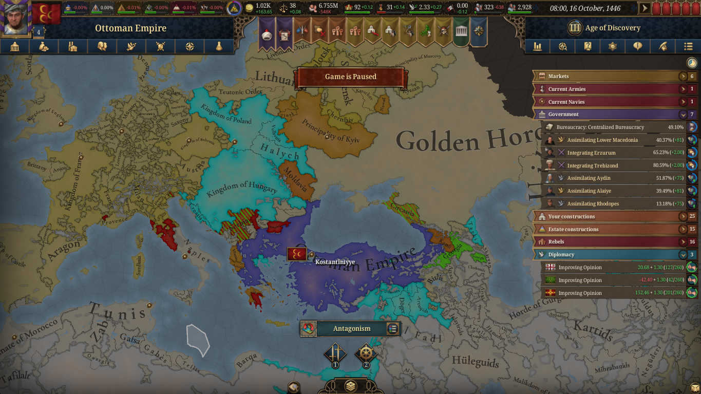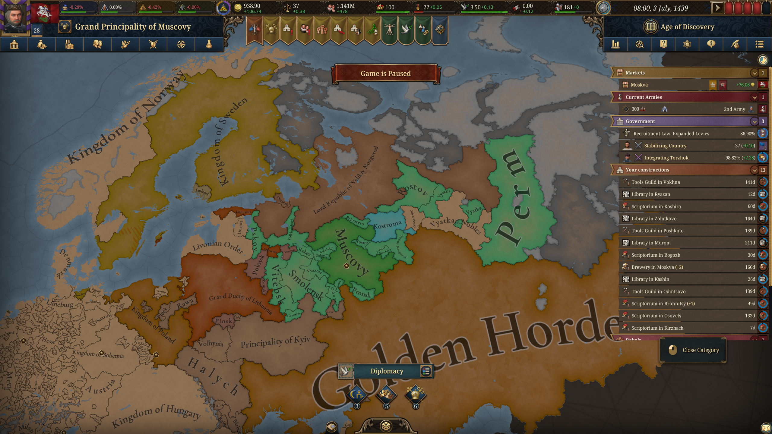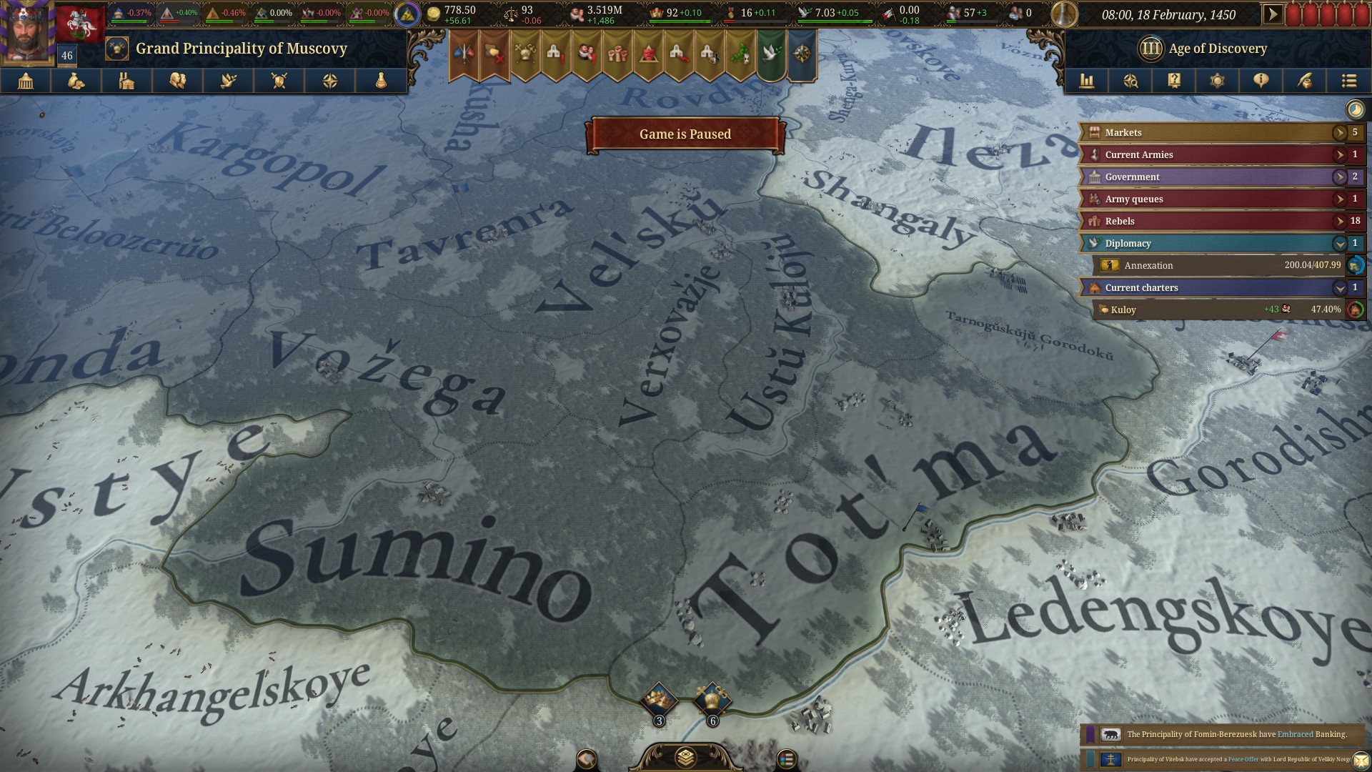 У меня такое ощущение что покрас в этой игре (за исключением колонизации, пока не щупал) происходит в таком же темпе как и вике 2 а не как в ЕУ4. Претензии просто так не сформируешь, ополчение тратить не хочешь потому что у тебя экономика сразу обмякнет после неудачной войны, и хуй ты нормально после этого поправишься потому что попы как голда не накапает. А обычные войска стали гораздо дороже и их куда меньше. В итоге из игры двигания мужика игра превратилась в вику 3.5.