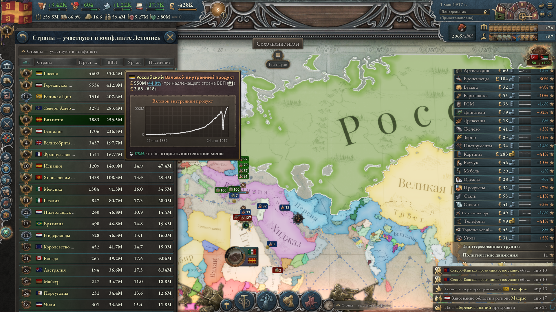 Вопрос номер 2. Нахуй в этой игре воевать для присоединения земель, если это не пиздец лакомый кусок с годным RGO и климатической зоной? Воевать для тряски бабок - это окей, но захват территорий ради чего? Проблем со стабильностью, еще +1 менеджмент локации которых и без того десятки или где-то сотни.