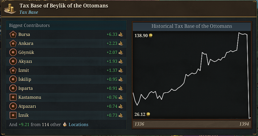 >>50418276 Так вроде или не менялась? Если там стоит автоматизация, то ставка скачет как ебанутая, чтобы довольство не падало ниже 50%. Ты и не заметишь этого. Посмотри еще всякие привилегии на освобождение от налогов, законы, правила или даже модификаторы по ивентам, ты их мог не замечая прокликать, а там какие-нибудь приколы типа -50% налогов от сословия на 10 лет. Алсо, налогом облагаются попсы, а не домики. Поэтому для налогов вообще похую, сколько их там (точнее, не похую, они приносят либо доход с деятельности либо товары производят, но иногда могут и в убыток для тебя работать, если субсидируются или покупают сурье дороже, чем продают продукцию), главное сколько народа, какая ставка и довольство.