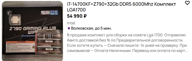 >>50417509 Вот забирай 9600, пока не расхватали. По 15к уже кстати нет, хотя были только вчера. Мать вот такая. 8 слоев текстолита, которые дают разгон ддр5 до 8000мгц, жирный питальник и хорошие радиаторы. За 15 рублей лучше ничего нет. Ддр5 сам поищешь. Раньше все кингбанки брали, но сейчас на них цена неадекватная. Я 6000цл30 брал за 9.5 в июне этого года, а сейчас что то в районе 17к блять. >>50417532 Есть там разница, не фантазируй.