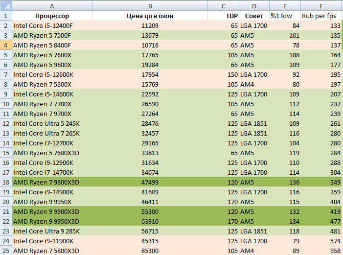 Пока получается, что AMD Ryzen 5 7500F выгоднее всего брать под ам5, потом можно на сокет выставить более мощный процессор