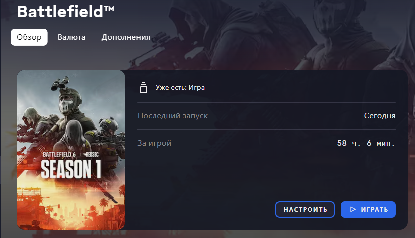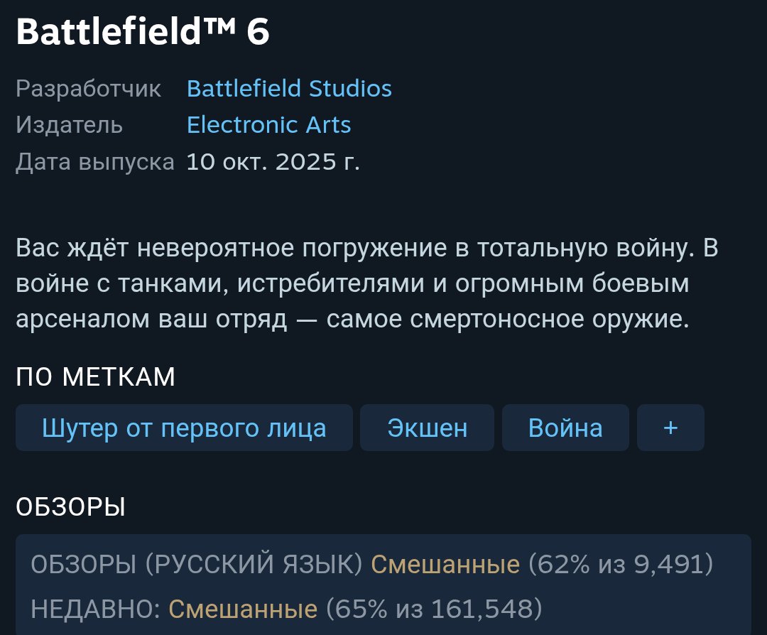 БФ4 129 часов ПК 193 консоль БФХардлайн 156 СВБаттлфронт 247 СВБаттлфронт 2 381 БФ1 653 часа БФV 473 часа (что я там делал вообще?) БФ2042 480 часов БФ6 117 часов