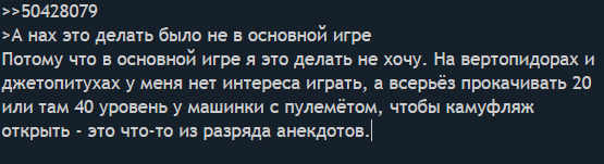 Какая няша. Алсо, дуэли с самолётами пиздец заёбистые, хуй чего ему сделаешь. С вертолётами гораздо проще - его если подловил из засады, как правило, он уже хуй чего сделает.