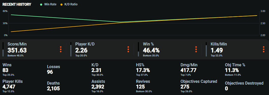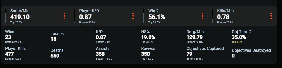 >>50430892 > нет ресов и обджектив тайма Хуевое кд. У таких пацанов как ты должно начинаться от 3.5, у знакомого при таком стиле игры 4.8, хотя даже у него 8% времени обджектив. А у тебя блять 0