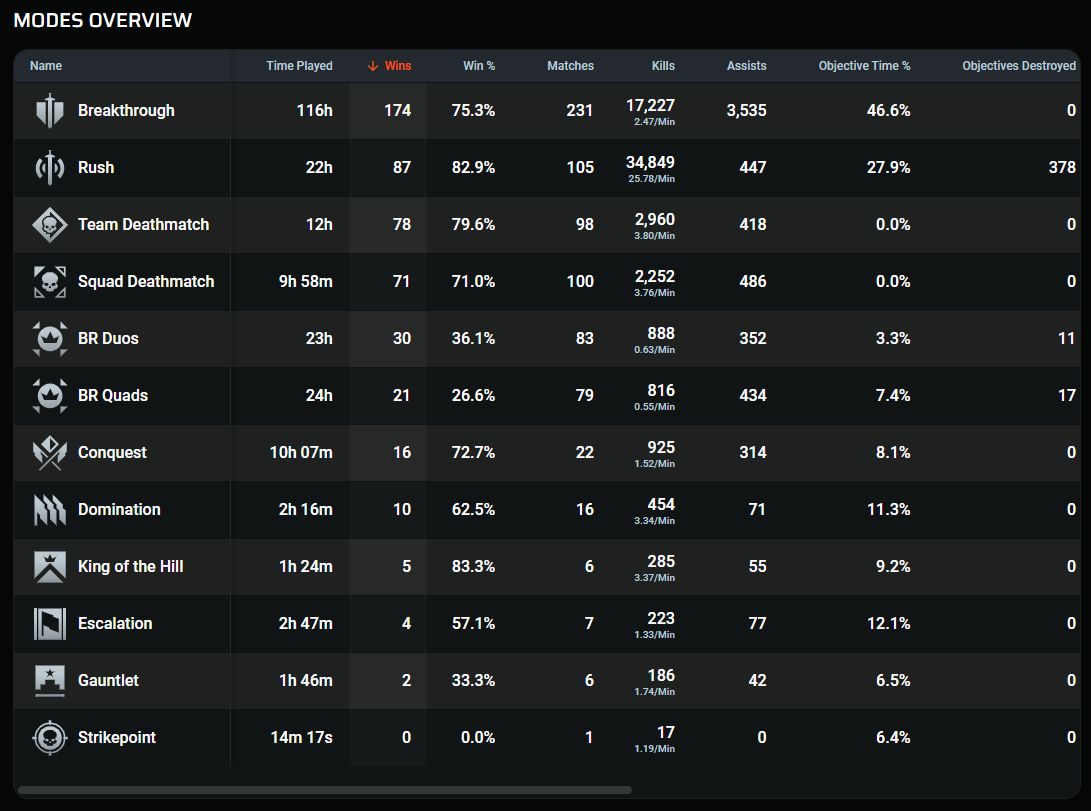 Было бы здорово, если бы мастерство и виклики закрывались бы с ботами, а в статистике бы ничего не менялось. Хуево, что из за фана в портале у тебя засирается твоя настоящая статистика. Вернее они вроде бы и сделали отображение плейер киллс, но во вкладе моыд и режиым, почему то оставили статистику вместе с ботами. Уебанство и полумеры какие то.