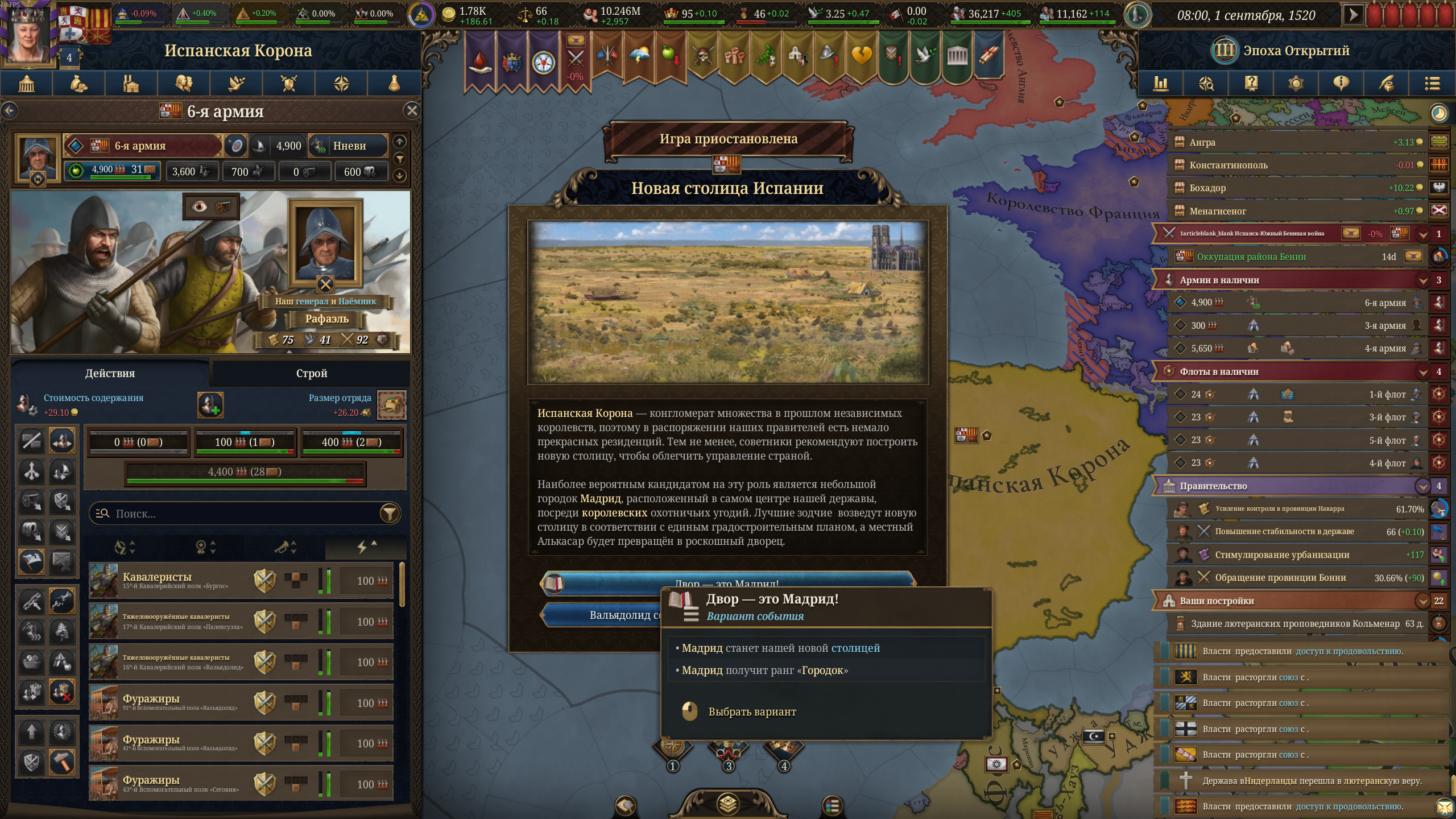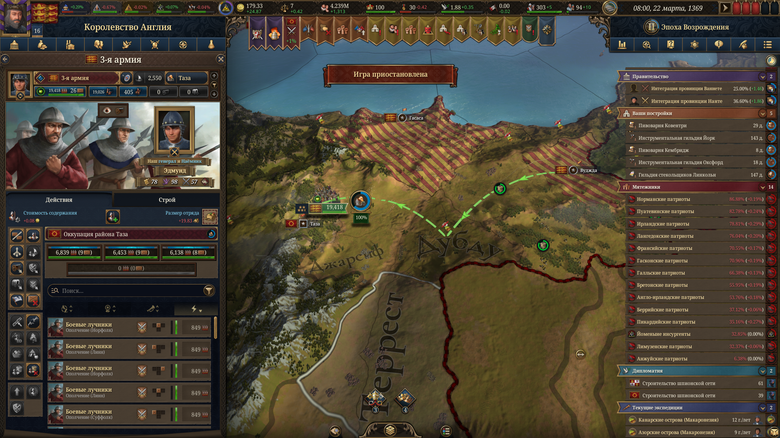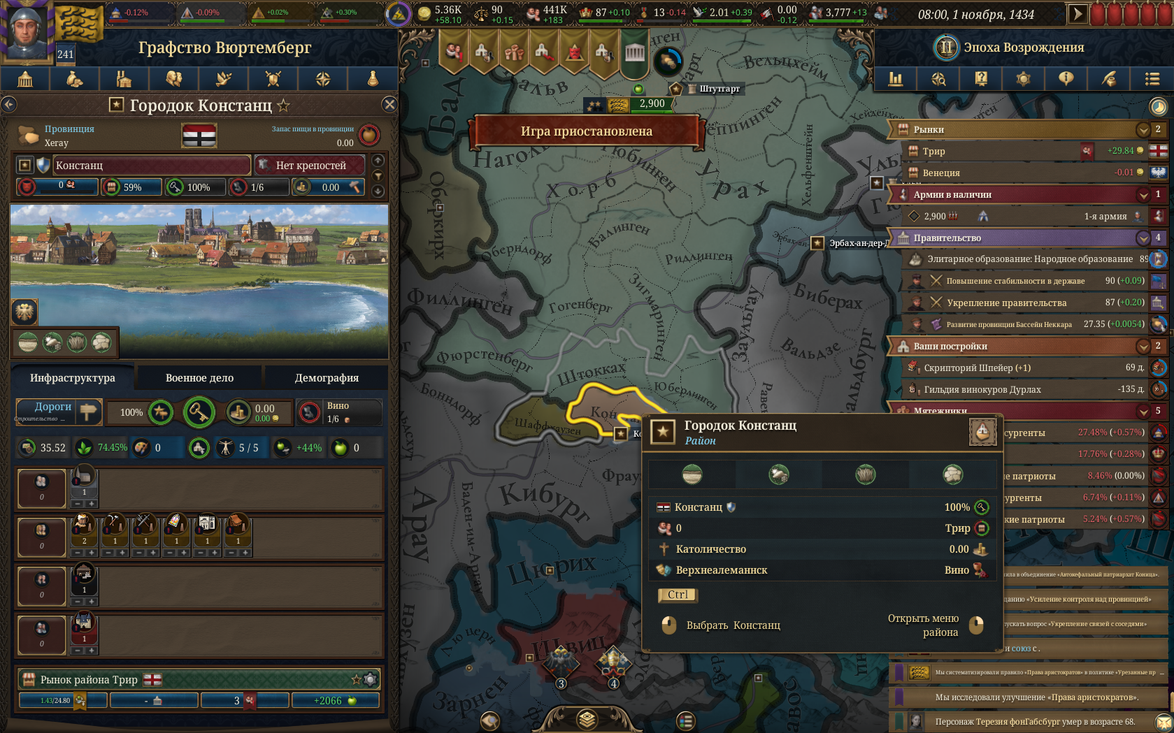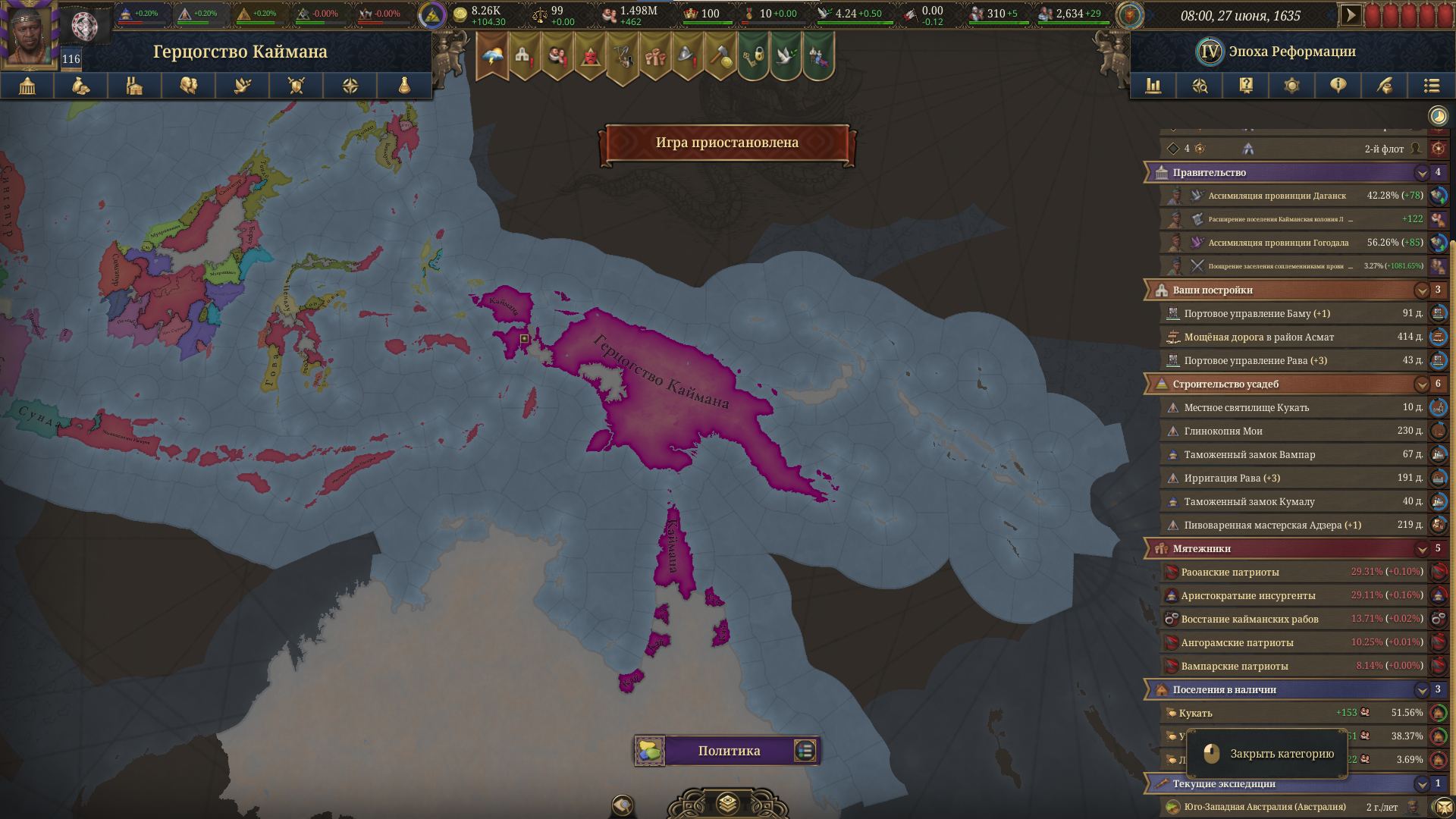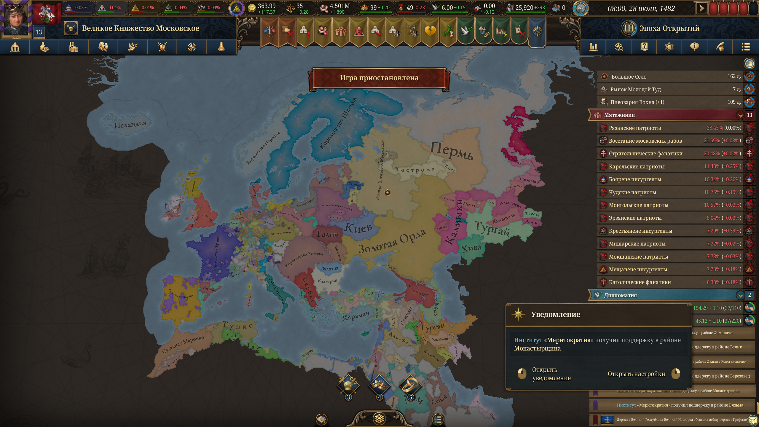 Планы на будущее, национализировать ебаннную Геную, потому что там повстанцы прям ебут, у них дебаф -50% Conqured, полагаю, за то, что я еще не национализировал их, приходится их давить советником чтобы они опять не брыкнули.