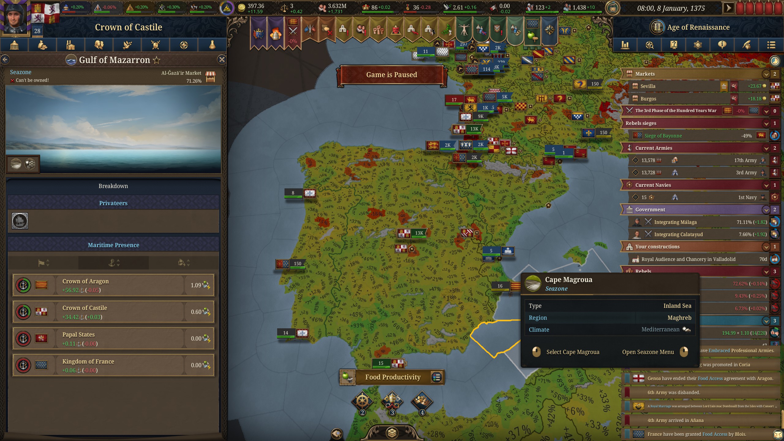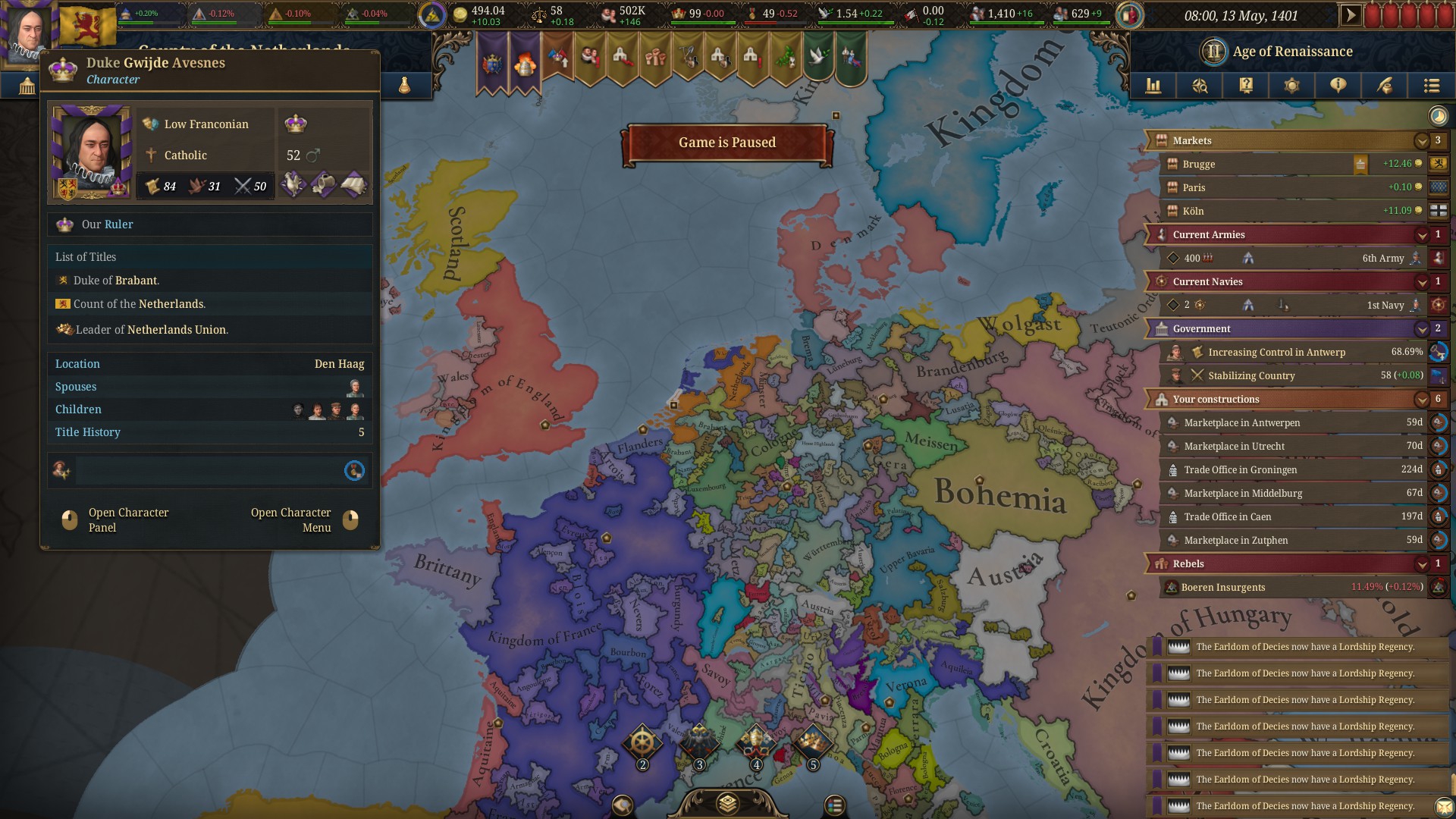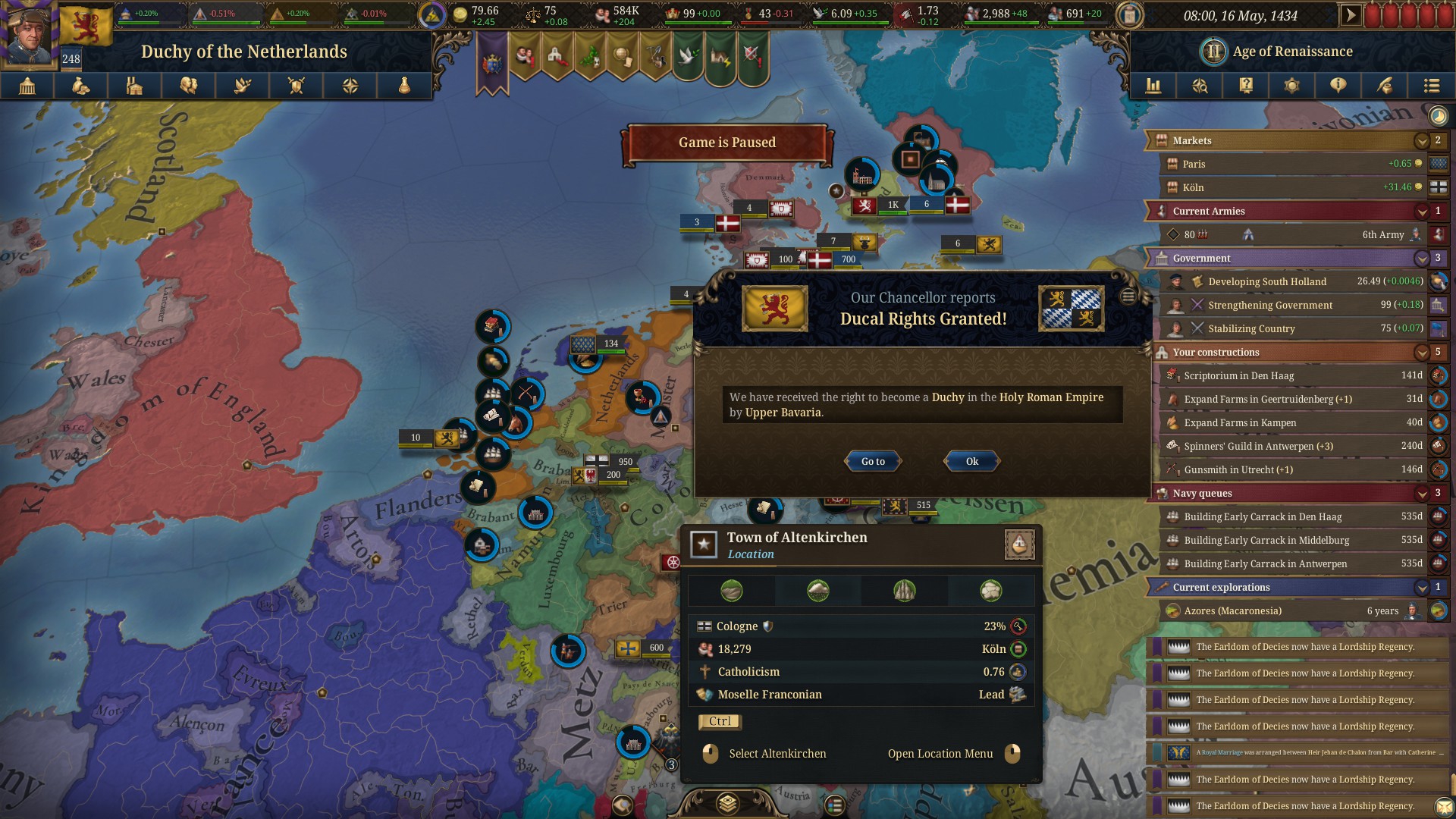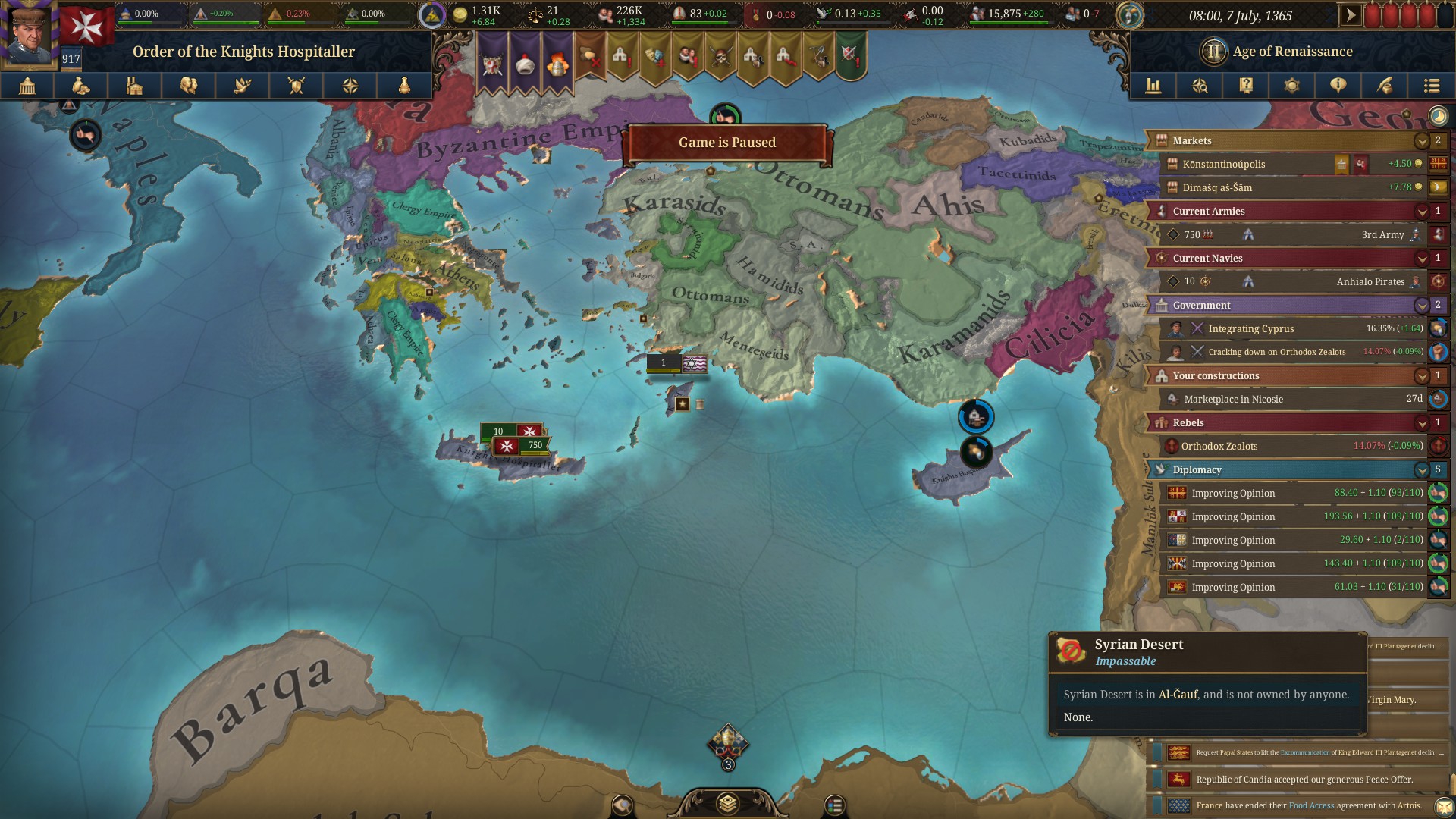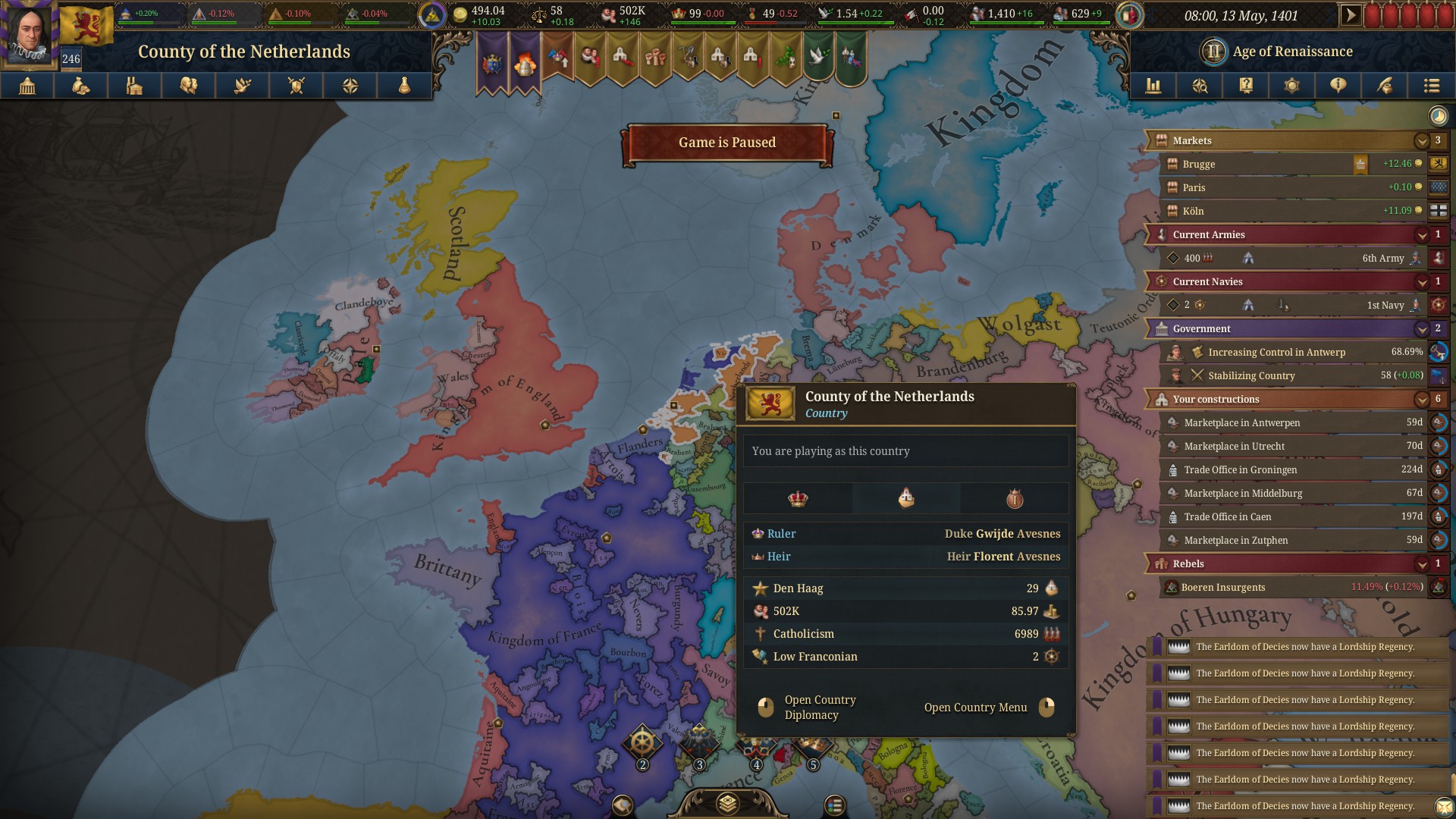 Планы на будущее, национализировать ебаннную Геную, потому что там повстанцы прям ебут, у них дебаф -50% Conqured, полагаю, за то, что я еще не национализировал их, приходится их давить советником чтобы они опять не брыкнули.