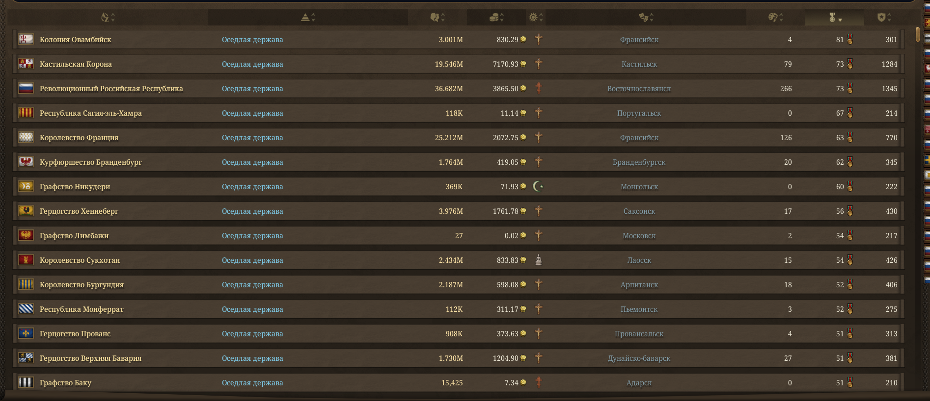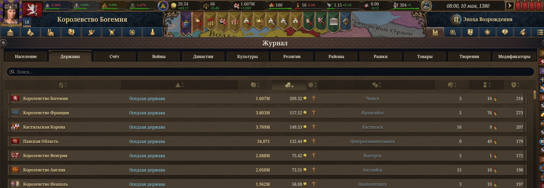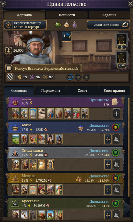 >>50421116 Заходишь сюда, и смотришь требования к рангу королевства. Вроде бы нужно больше ляма населения. Республики у меня не случилось, но вот Сфорца появился.