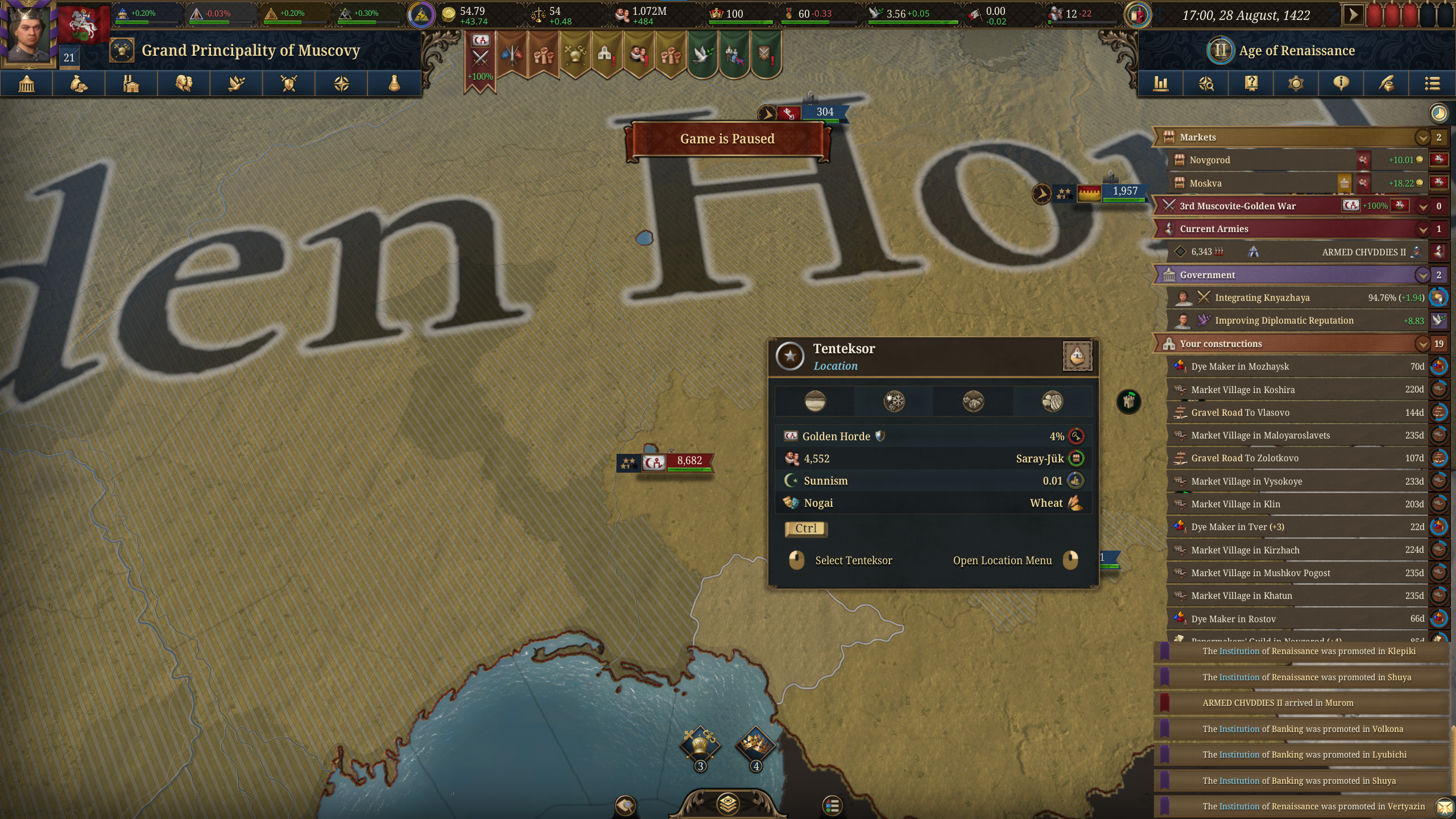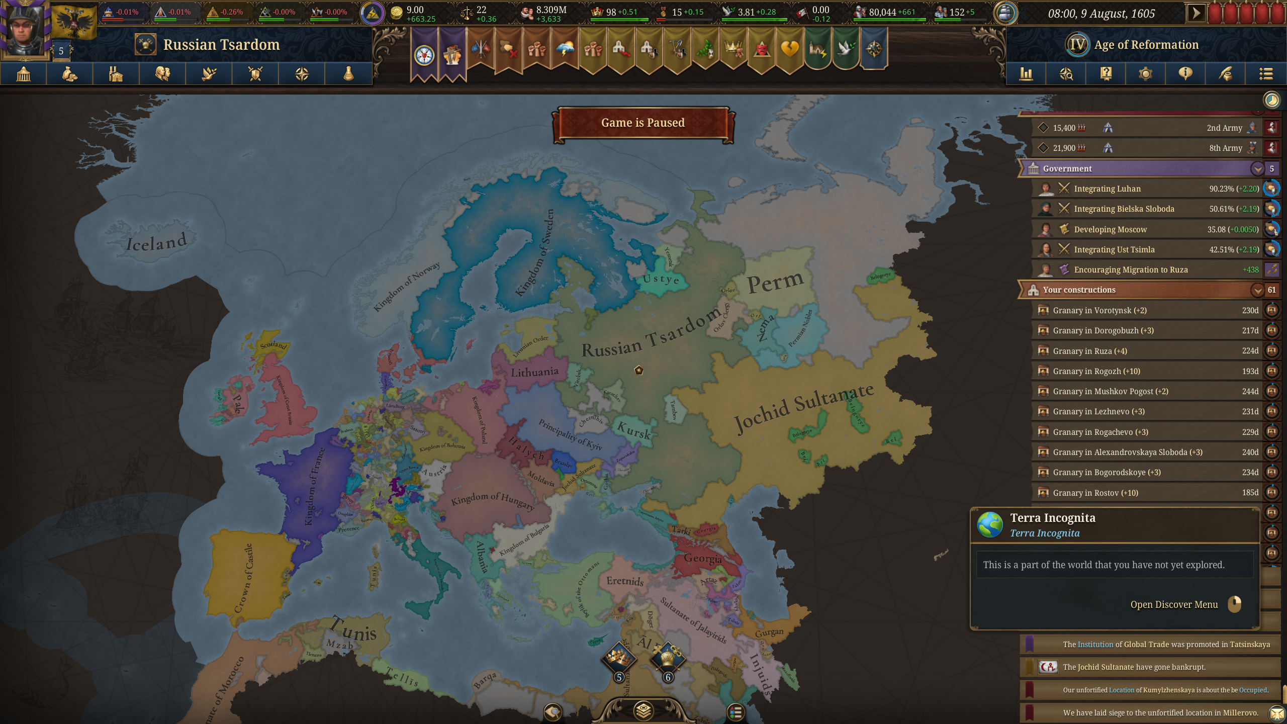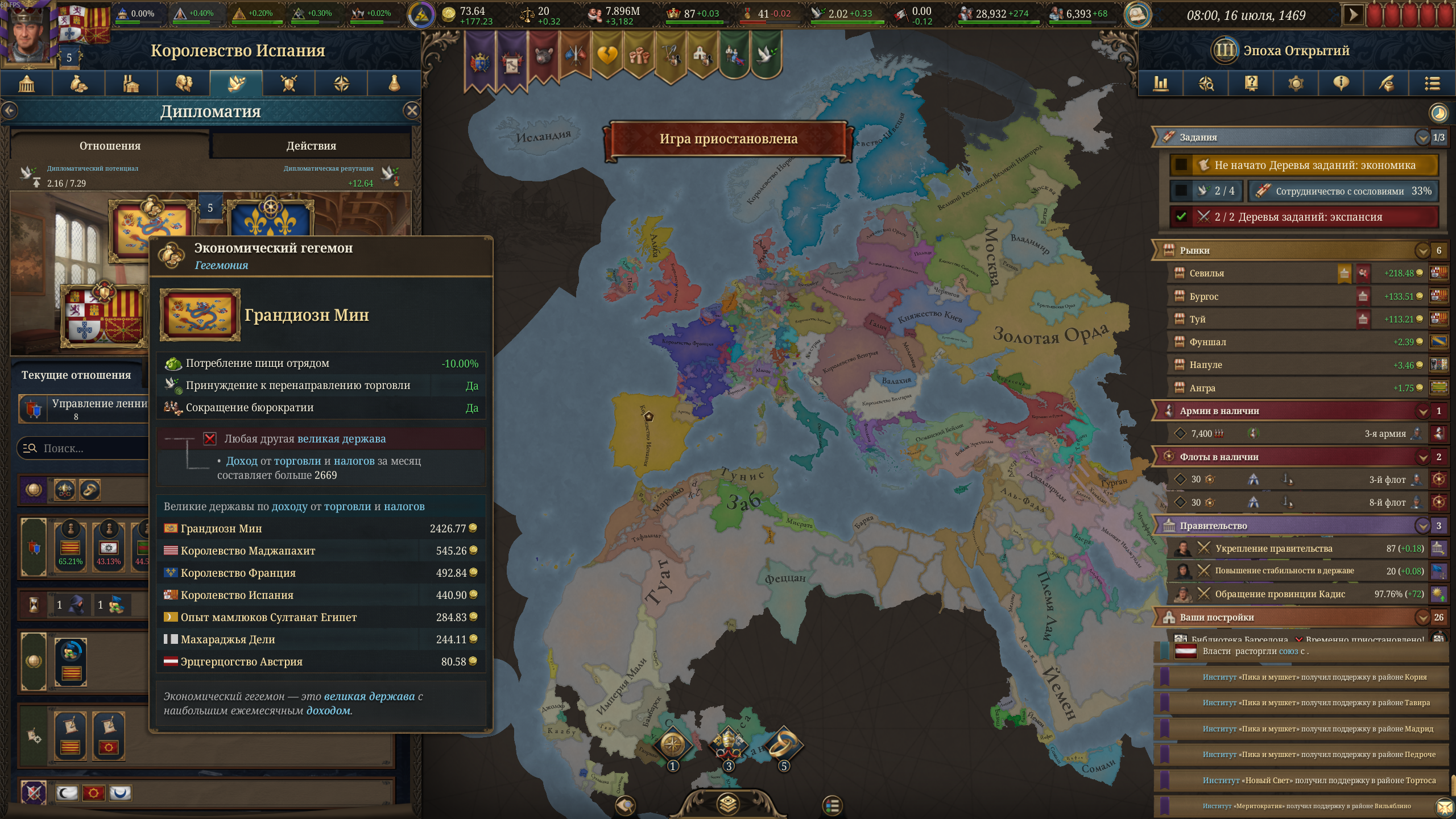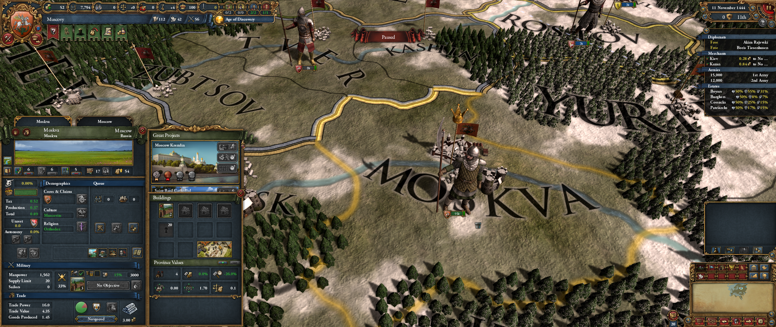 Я не понимаю как вы умудряетесь доигрывать до 17 века, я постоянно паузю, тыкаюсь думаю что построить, еще и игра медленно идет на моем атлончике. За два дня игры до 1380 доиграл