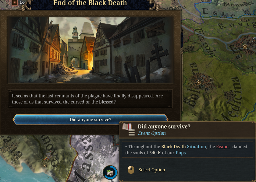 >>50429912 Пытался щас вспомнить, наверное это чума. Бубонная чума выкашивает прям дохуя народу, но я и не пытался с ней бороться: там ведь и больницы есть, и приказы